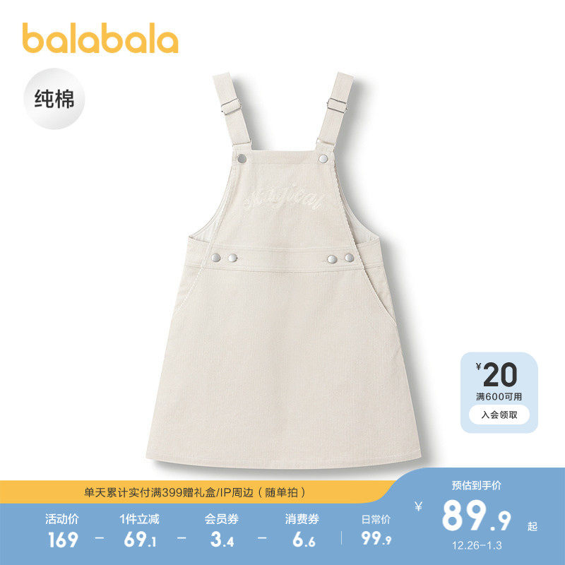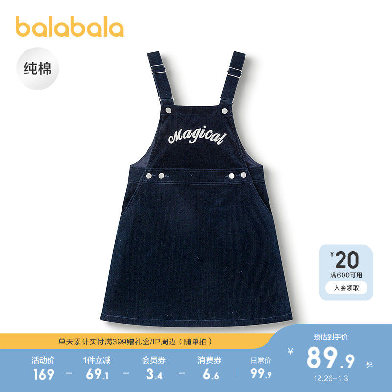 巴拉巴拉童装女童连衣裙秋装款学院风背带裙纯棉灯芯绒舒适百搭潮