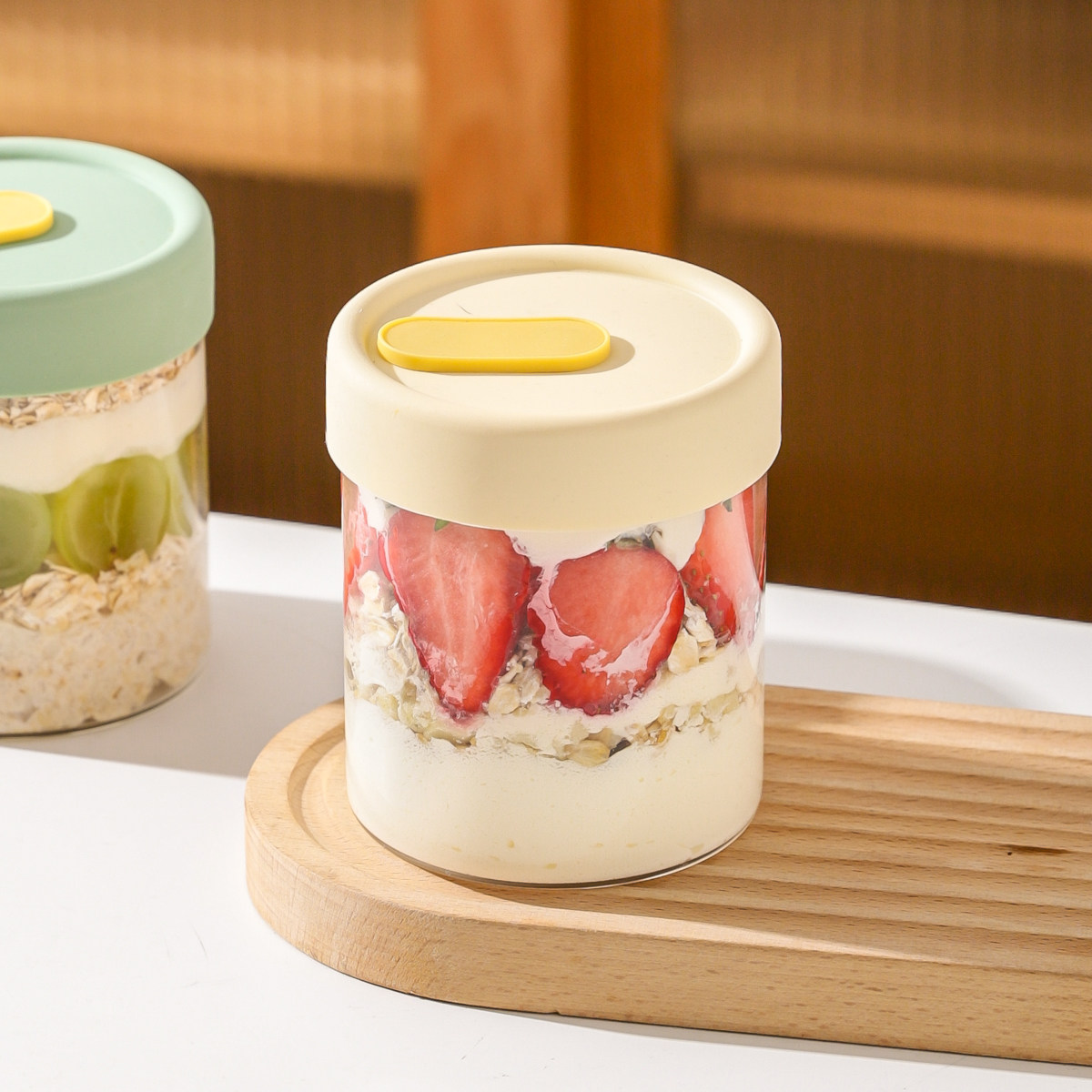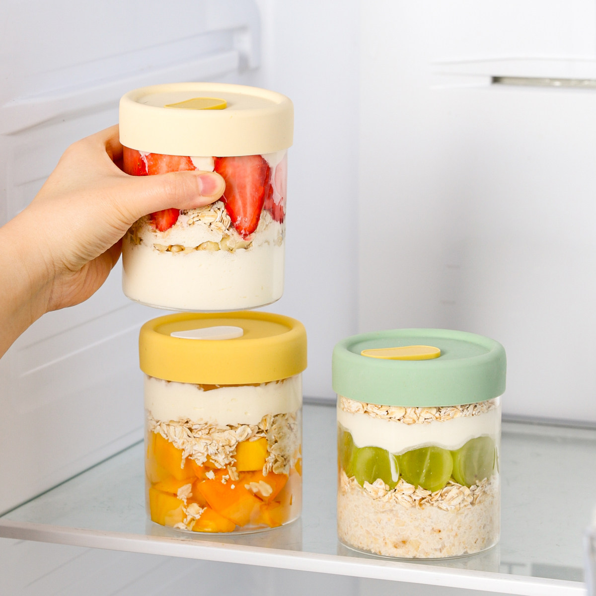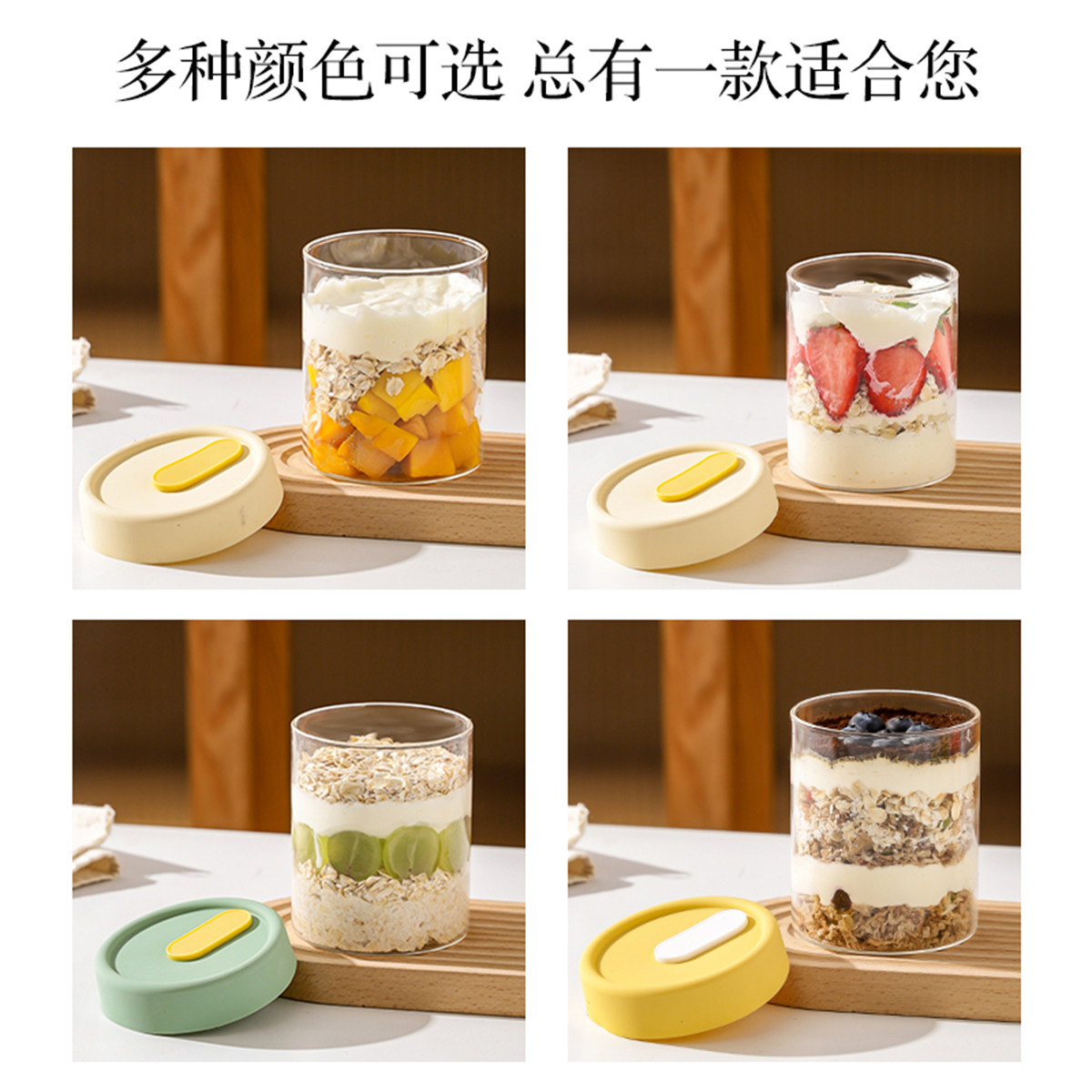 川岛屋隔夜燕麦杯子带盖带勺酸奶杯玻璃外带水果上班族便携早餐杯