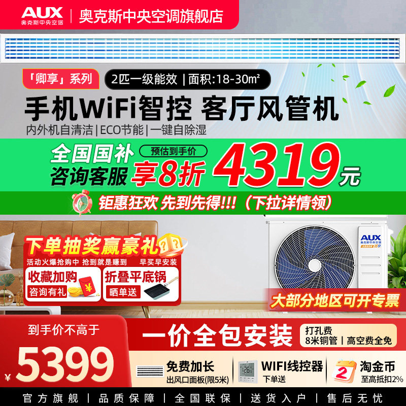 【卿享】奥克斯2匹全直流一级风管机变频家用中央空调一拖一客厅