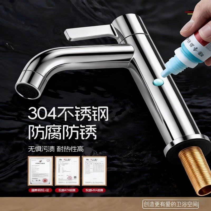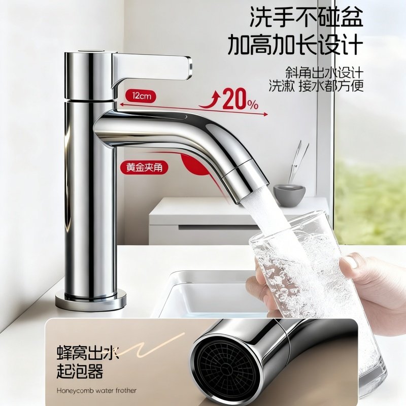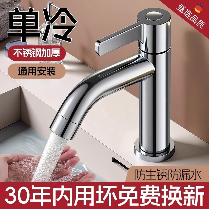 精铜不锈钢单冷洗脸盆水龙头卫生间冷热面盆台盆家用浴室洗漱台盆