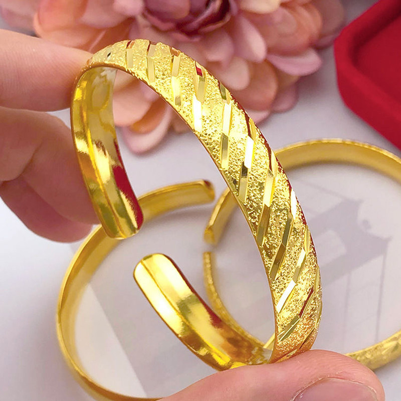 越南沙金手镯女久不掉色开口光面铜镀金材质送妈妈手镯子首饰品