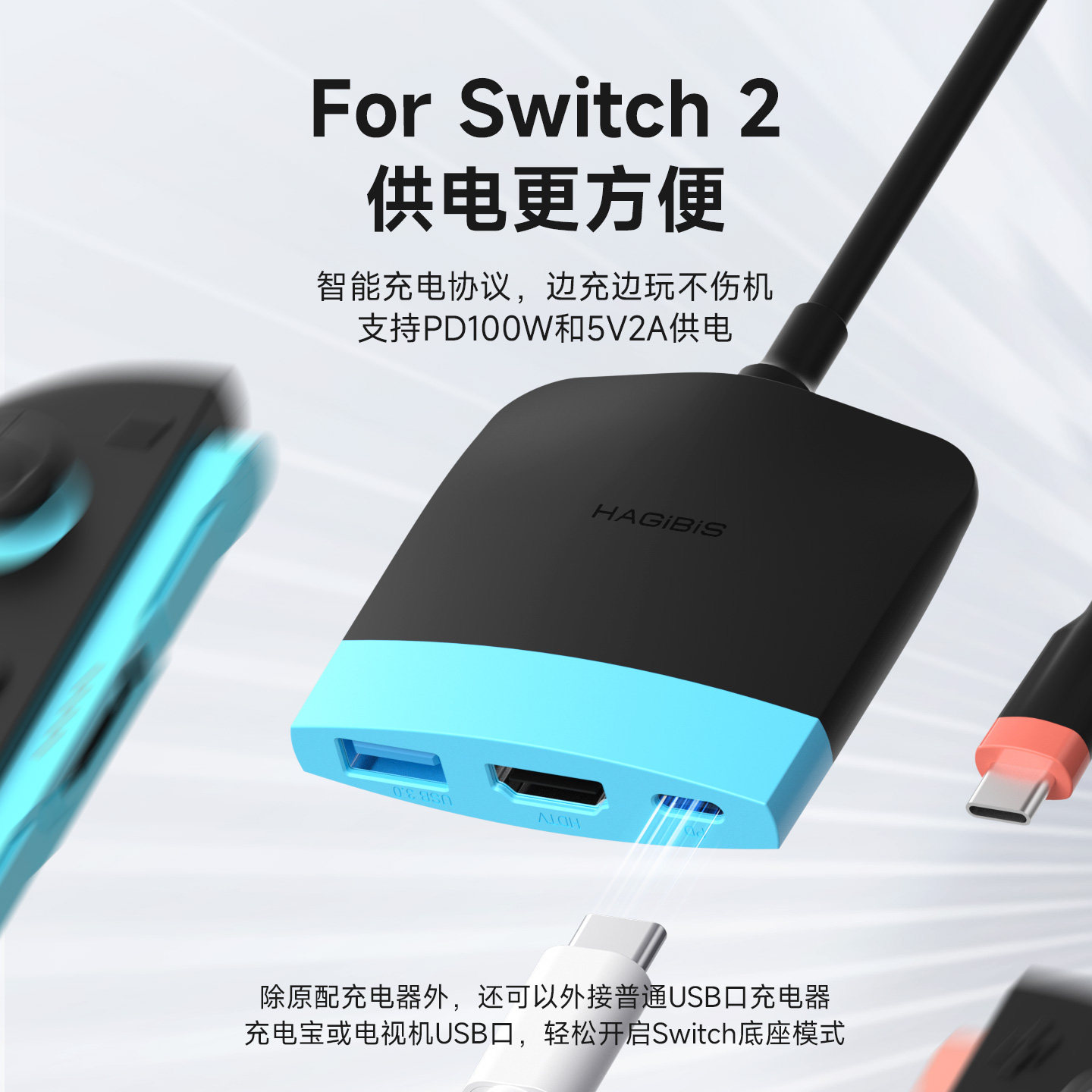 海备思适用switch2便携底座ns/OLED投屏线拓展坞typec电视扩展连接线游戏视频显示器转换器HDMI线TV模式配件