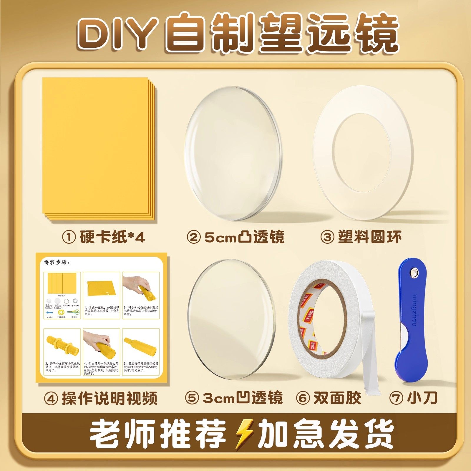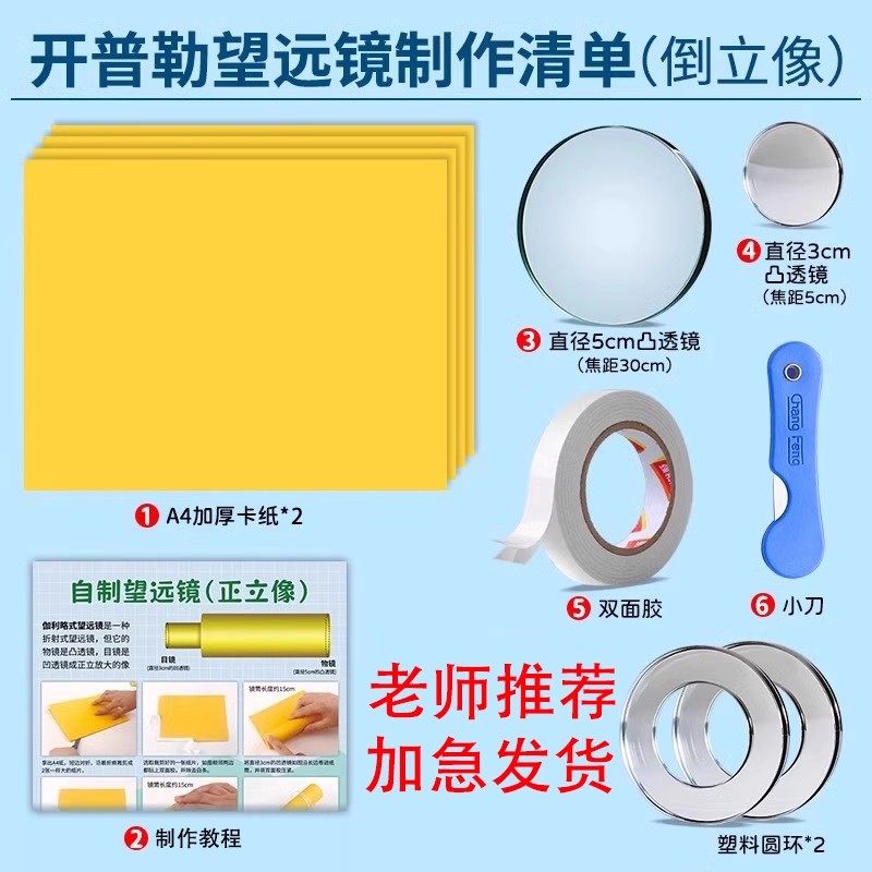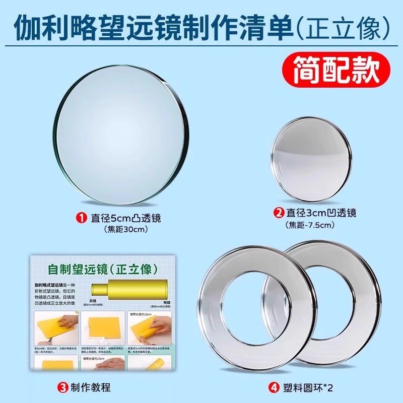 自制望远镜材料实验镜片凸透镜凹透镜光学玻璃望远镜模型小学科学手工自制材料初中物理伽利略开普勒望远镜