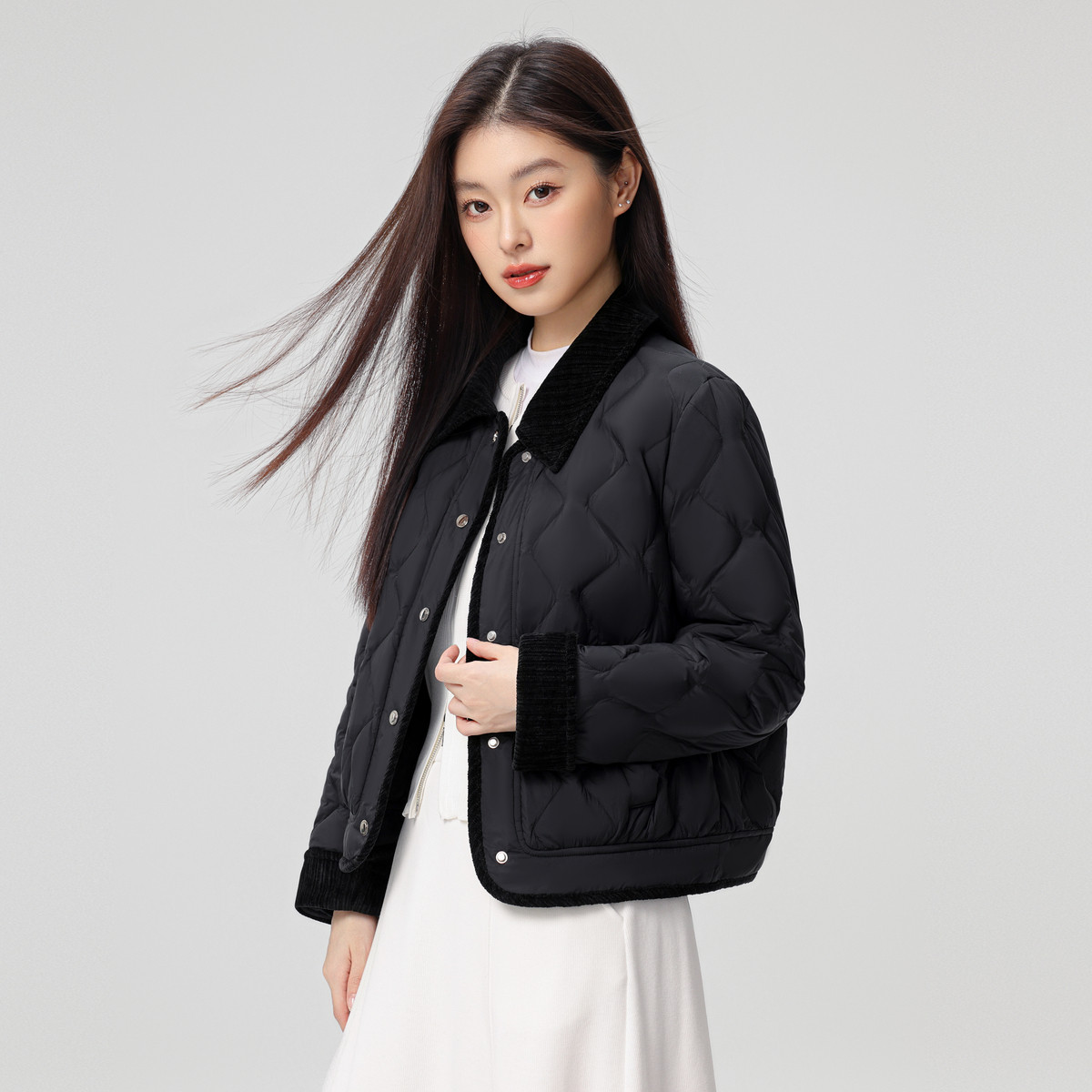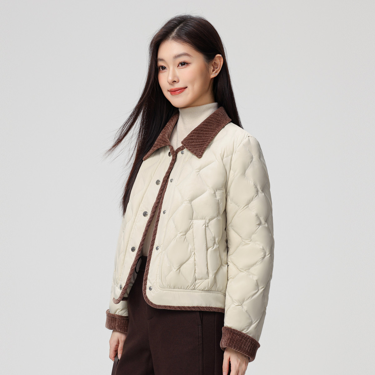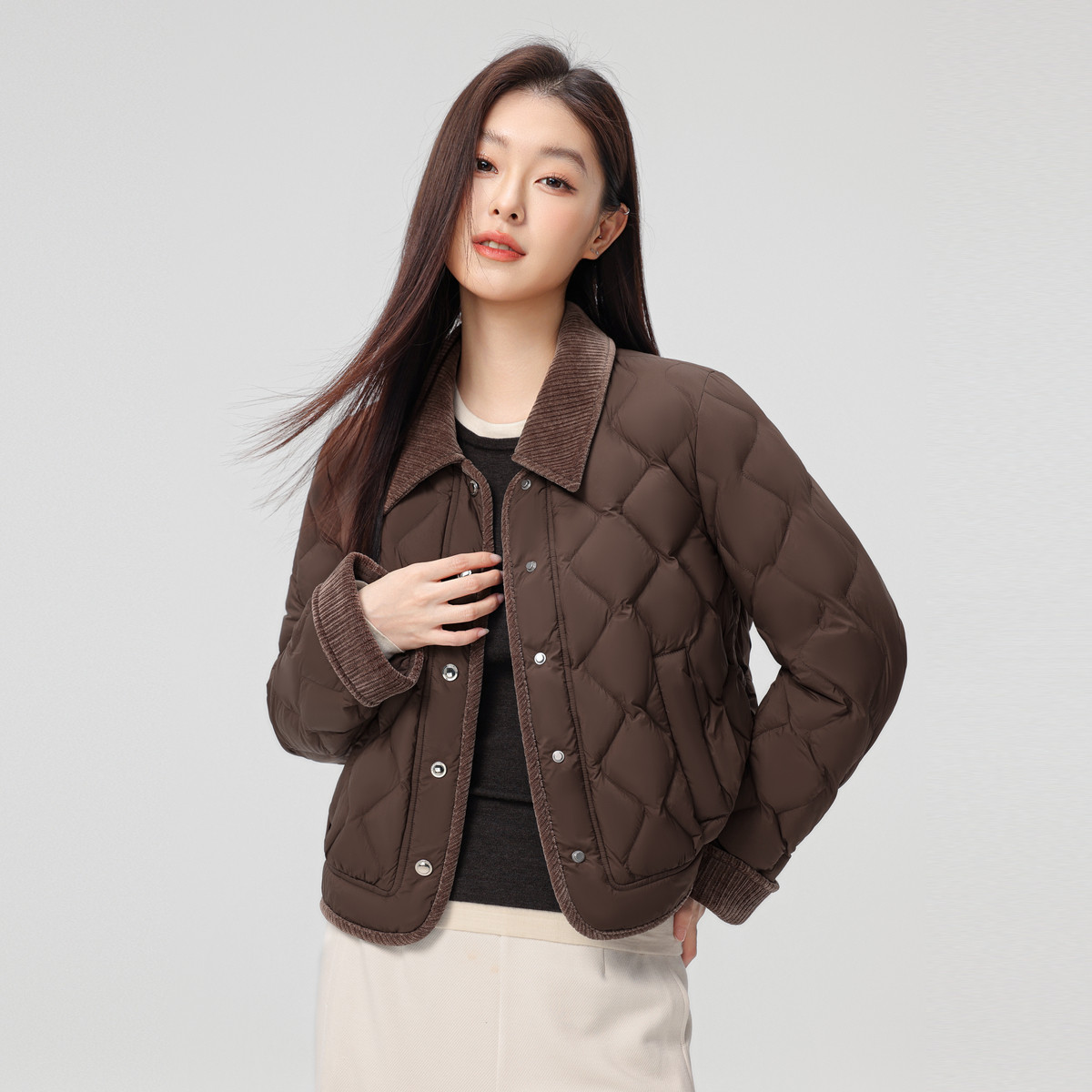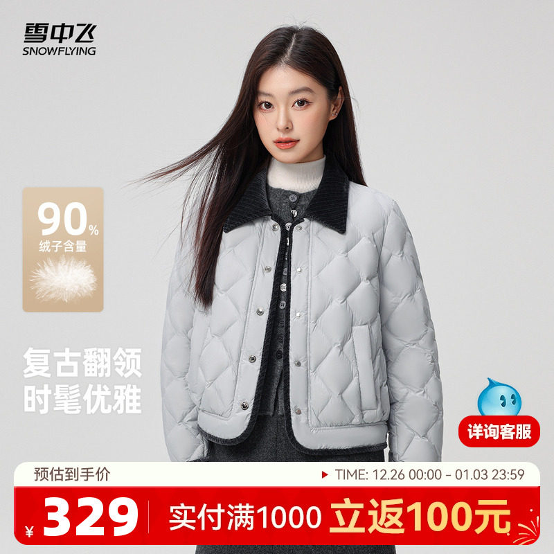 雪中飞2025冬新款短款轻薄羽绒服女冬翻领巴恩风复古韩系保暖外套