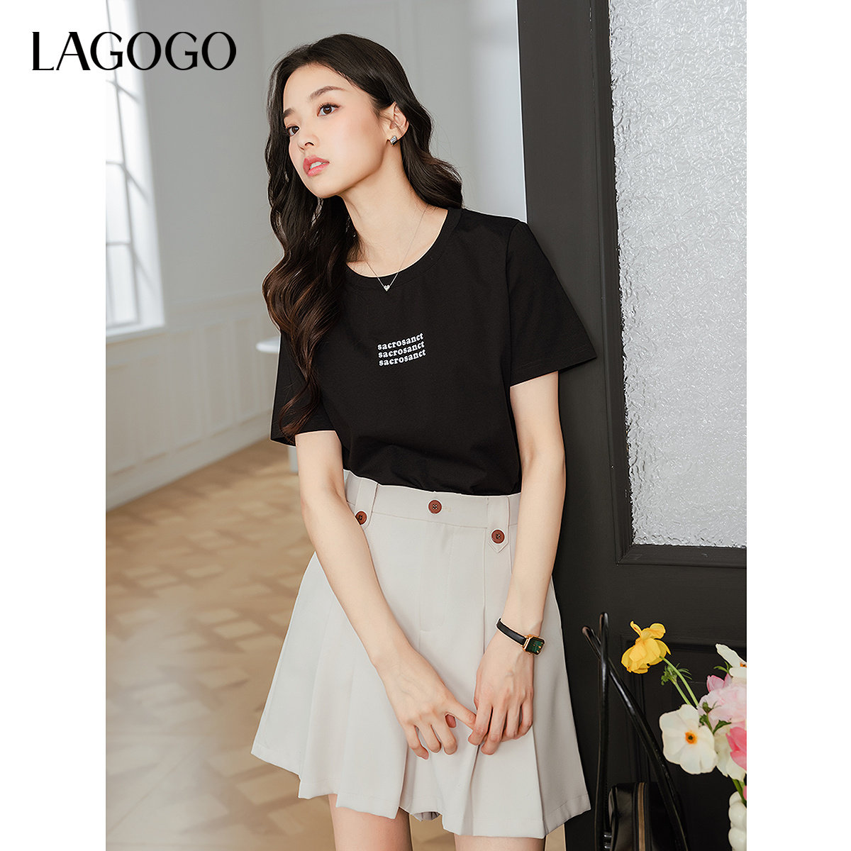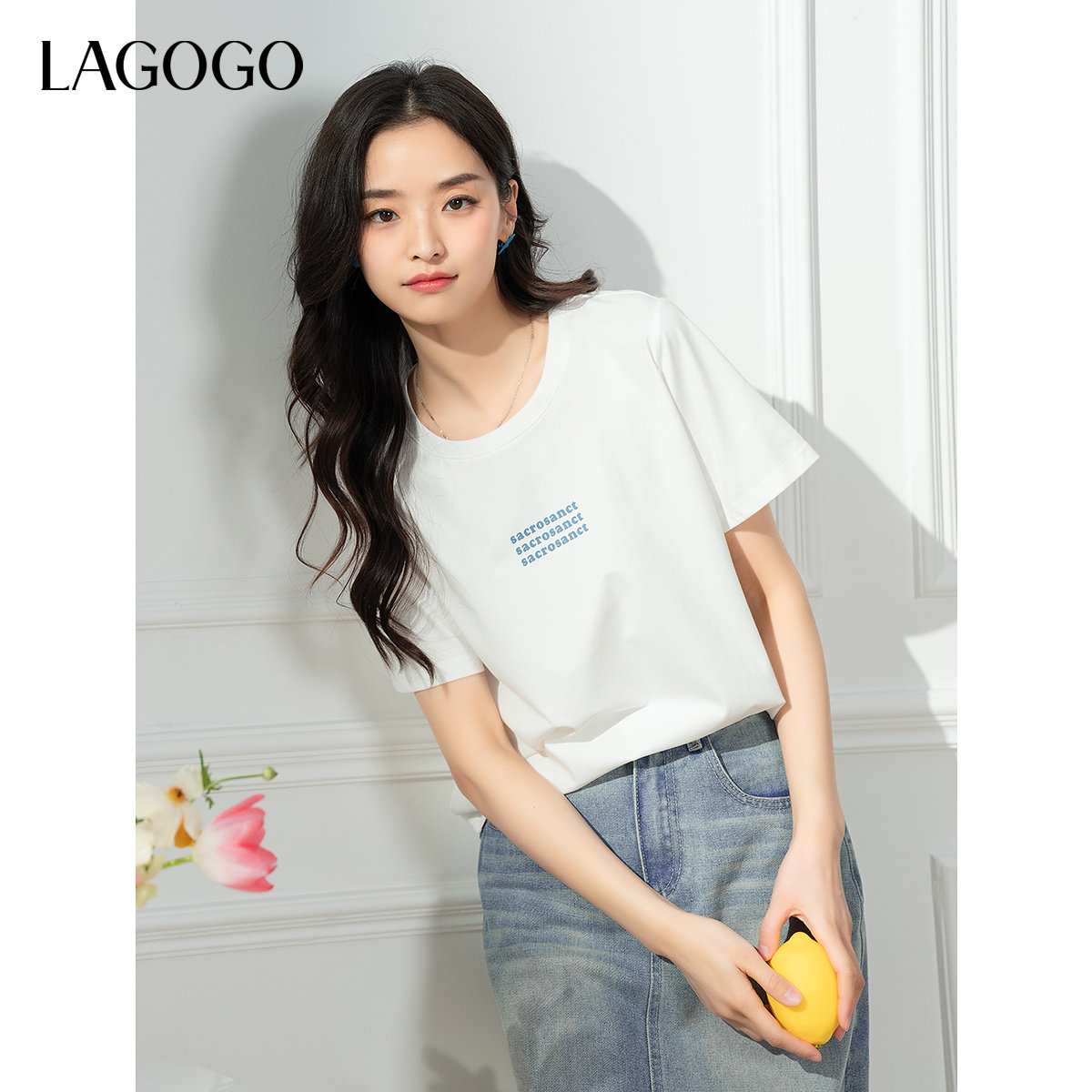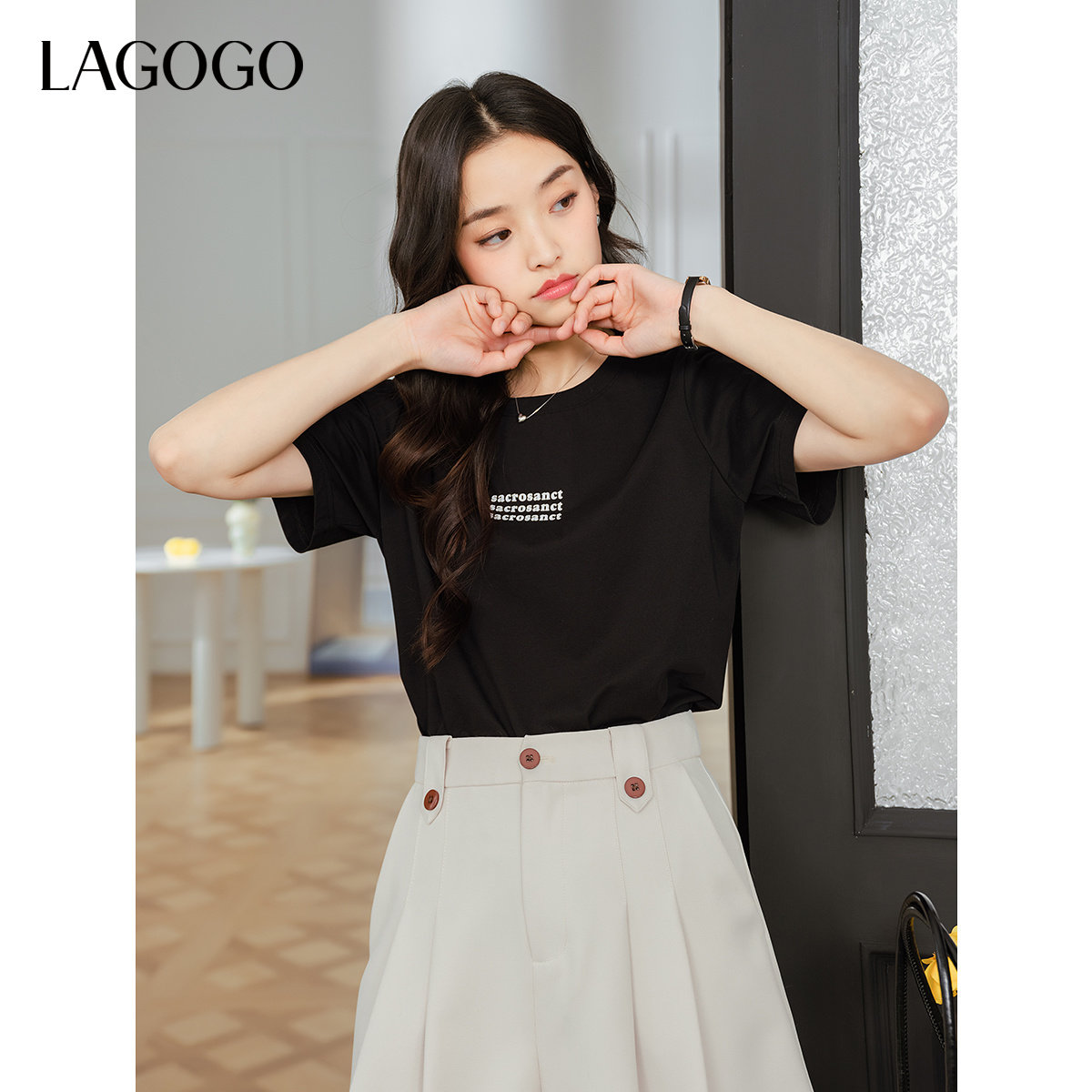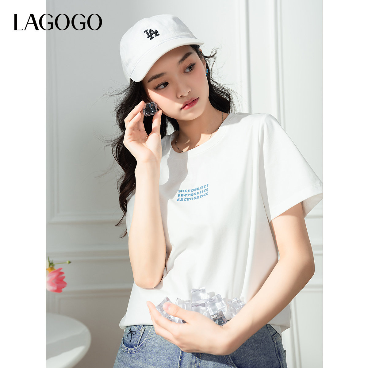 【瞬间凉感】LAGOGO白色简约T恤女士拉谷谷2025夏季新款休闲短袖