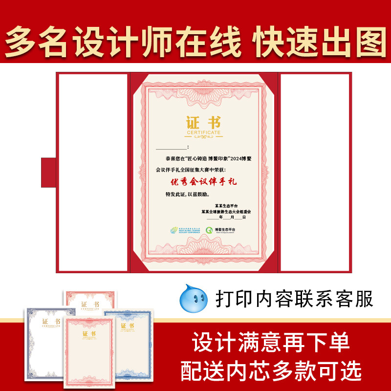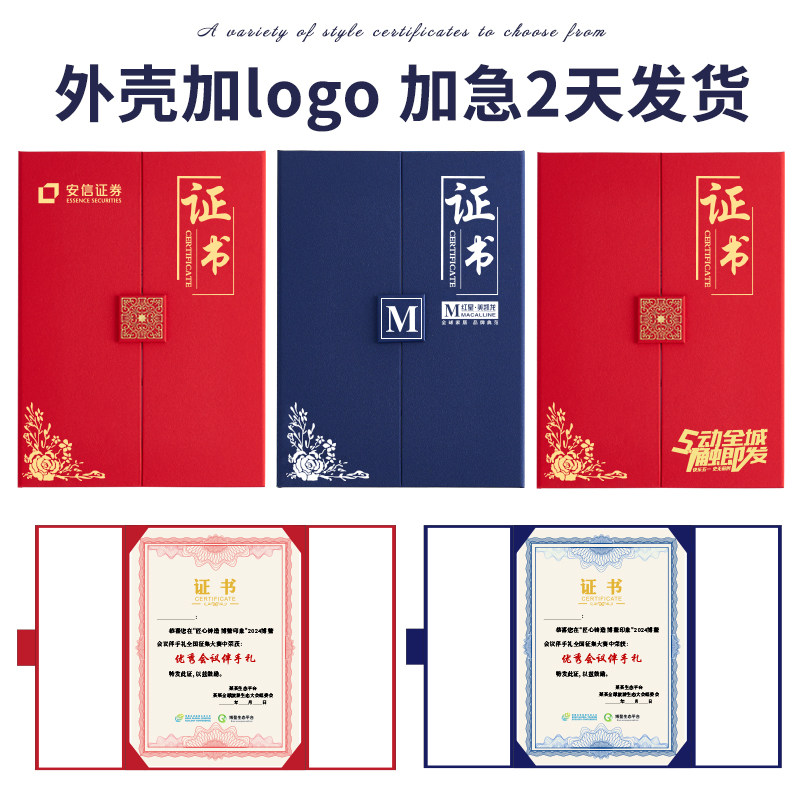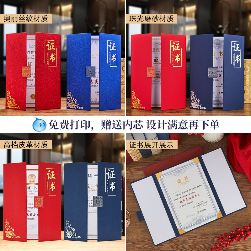 营养师证书三折式定制红蓝双色封套烫金企业学校职位聘请任职证书