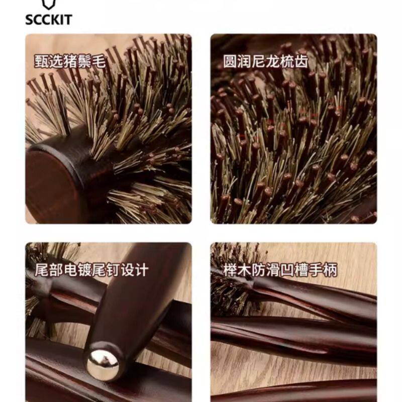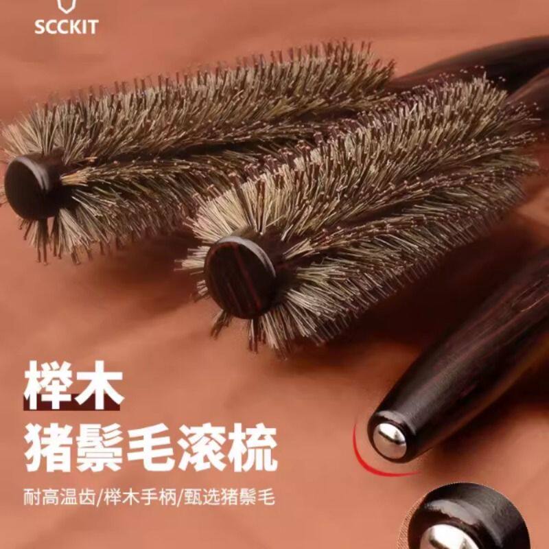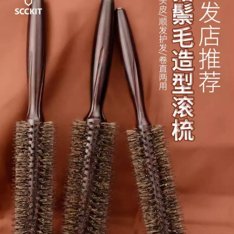 滚梳发廊专业猪鬃毛卷发梳子女士专用长发造型梳内扣圆筒木梳家用