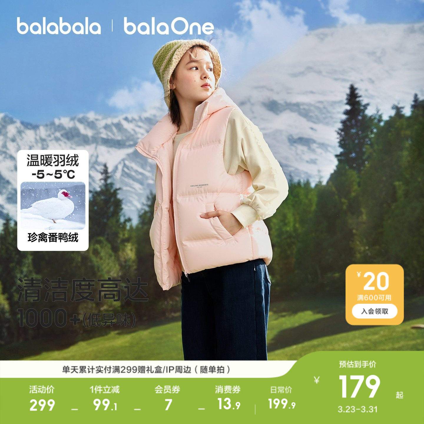 巴拉巴拉balaOne儿童羽绒马甲女童男童小童外套新款童装2025秋冬