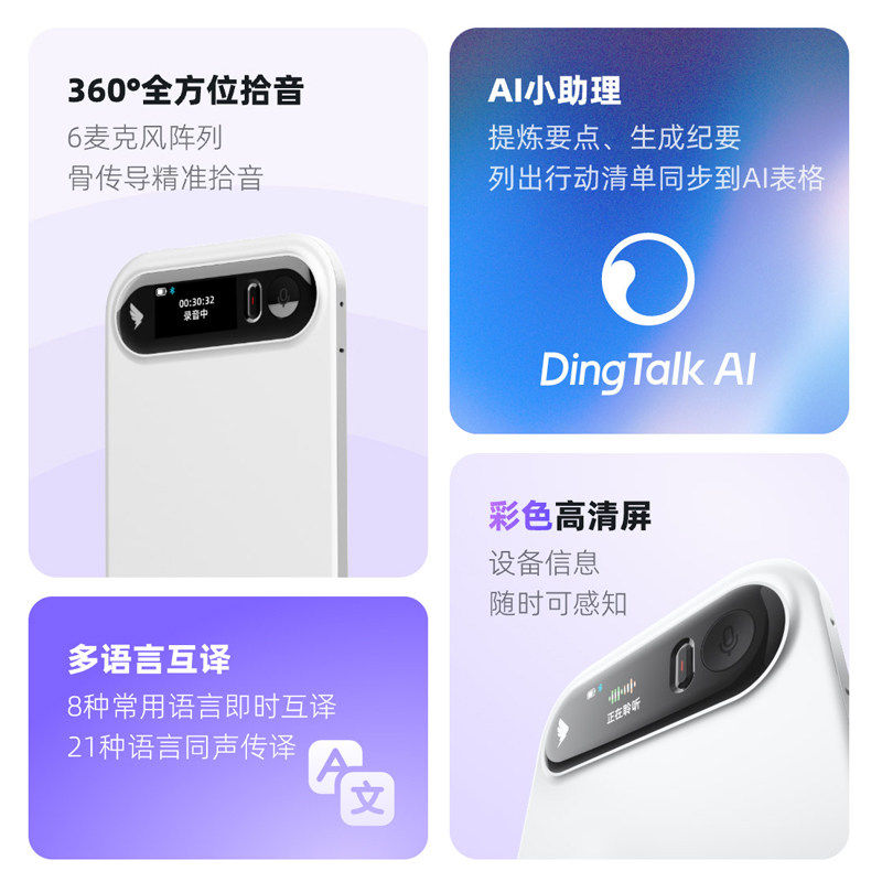 钉钉A1 DingTalk a1 钉钉录音笔智能AI录音卡片会议记录转写翻译