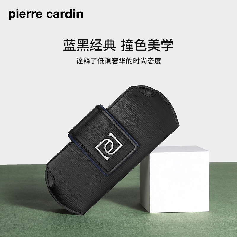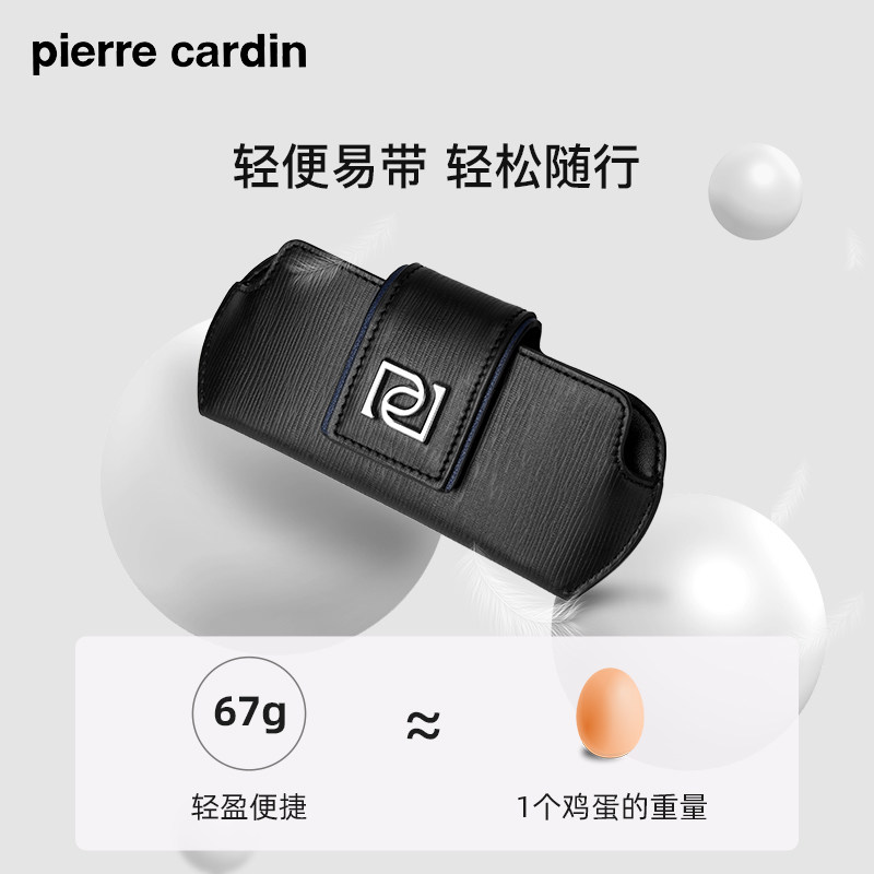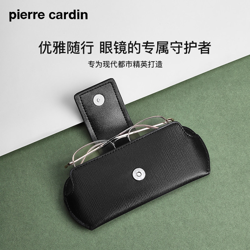 皮尔卡丹真皮眼镜收纳包便携式男款近视眼镜保护套挂包牛皮眼镜盒
