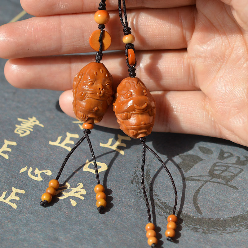 老料橄榄核手工核雕十二生肖手机挂坠手机链包挂国风饰品钥匙扣