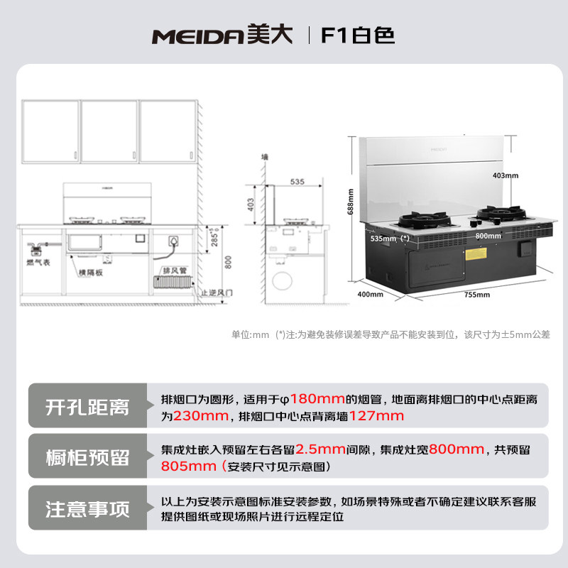 美大集成灶F1一体机分体式集成灶改造厨房家用油烟机燃气烟灶套装
