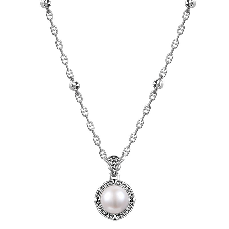 MGS曼古银香颂系列珍珠项链吊坠复古精致时尚轻奢S925银女锁骨链