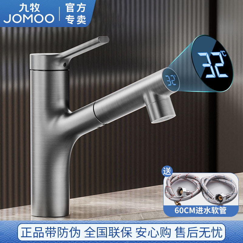 九牧面盆龙头冷热水温度数显抽拉式洗脸盆伸缩洗漱台洗手池32696