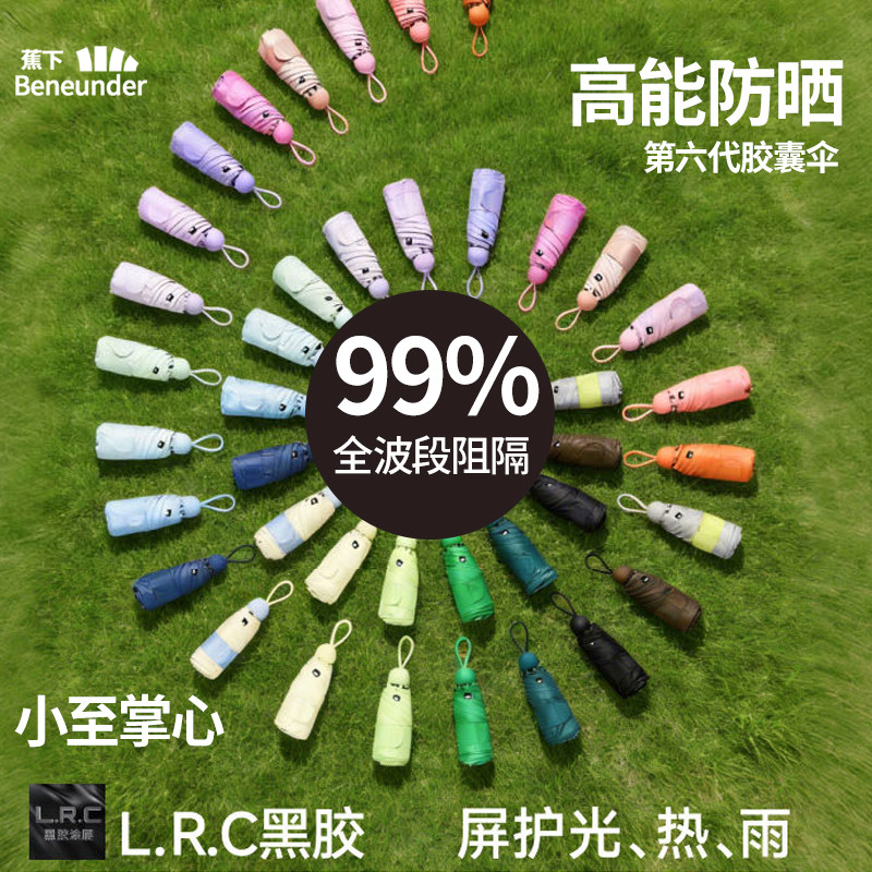 蕉下胶囊遮阳伞防紫外线防晒伞女夏伞晴雨两用黑胶小号便携太阳伞