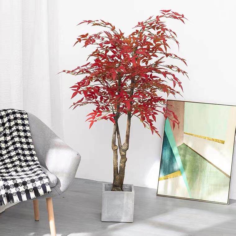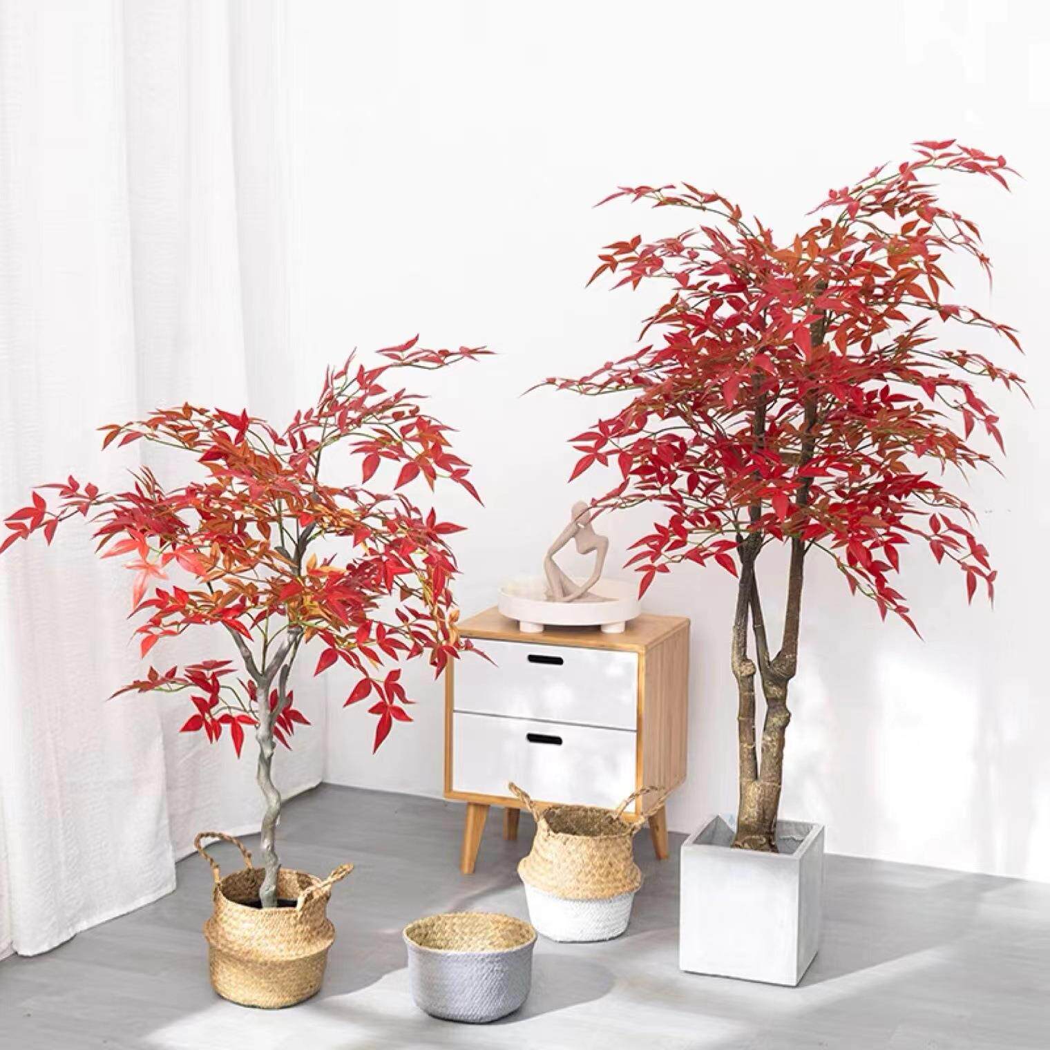 仿真红枫叶植物假盆栽摆件新中式假盆景造景落地装饰绿植仿真花