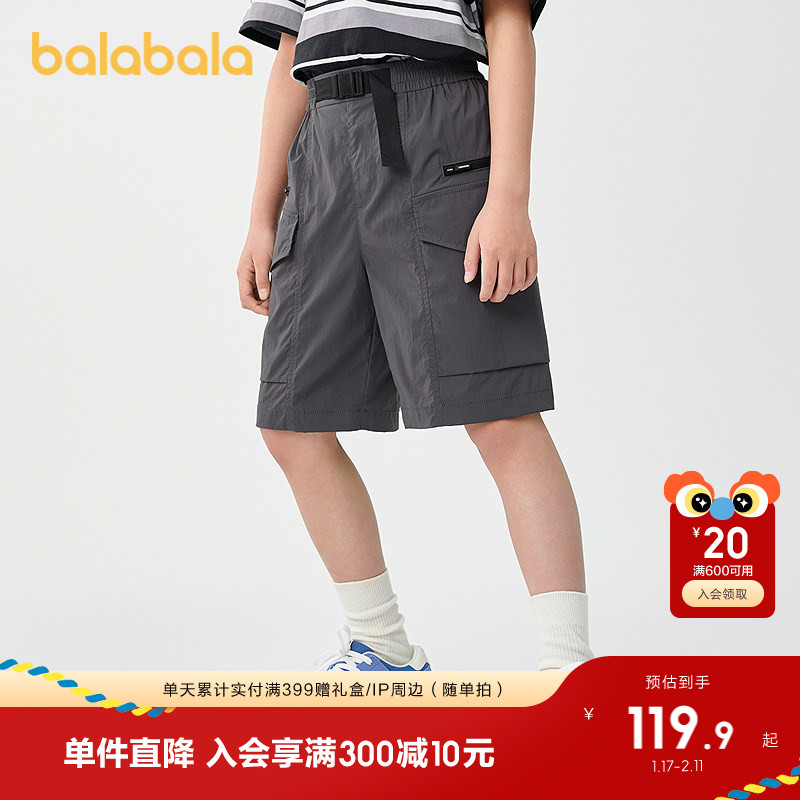 巴拉巴拉童装儿童中裤男童宽松短裤2025夏款凉感工装薄款透气潮酷