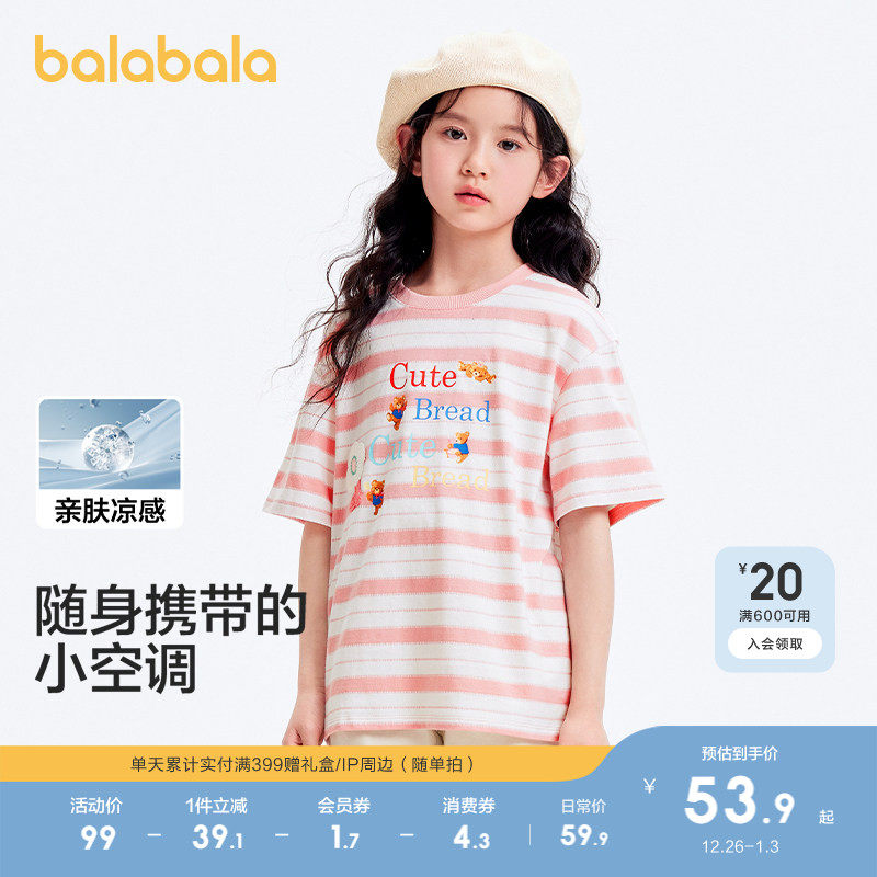 巴拉巴拉童装儿童短袖t恤女童夏装大童速干甜美凉感宽松舒适上衣