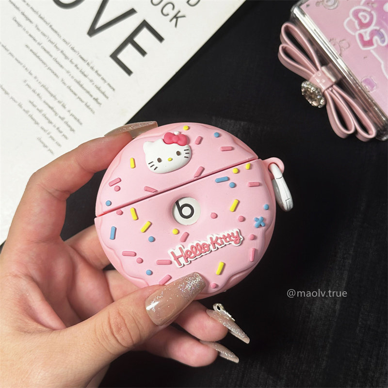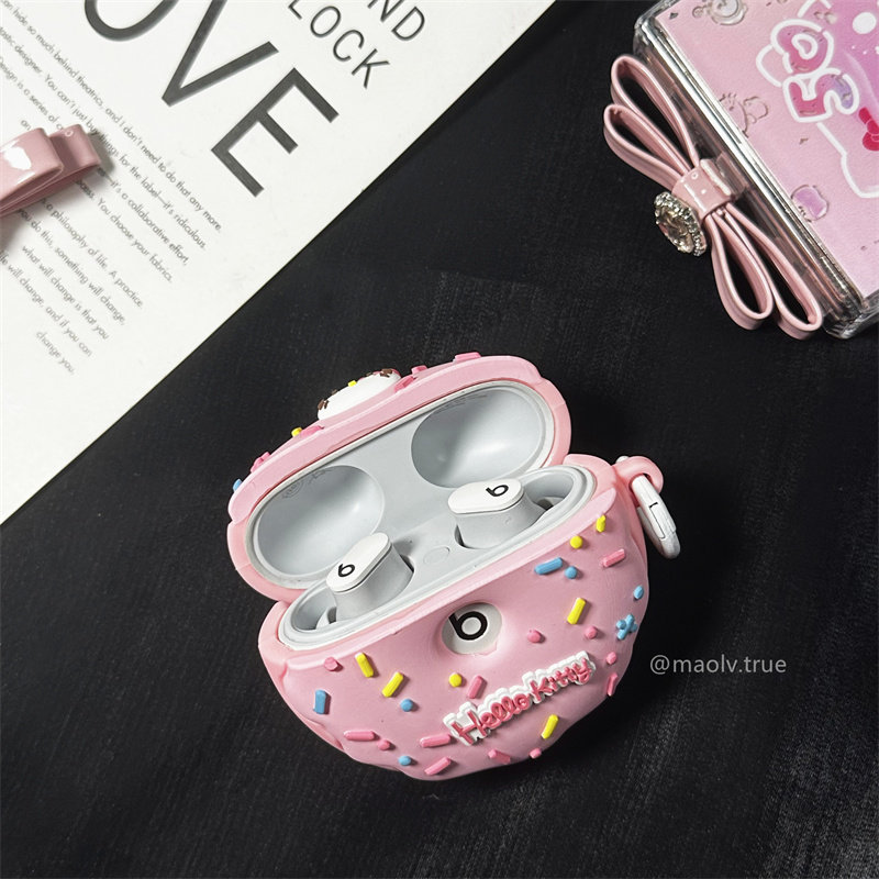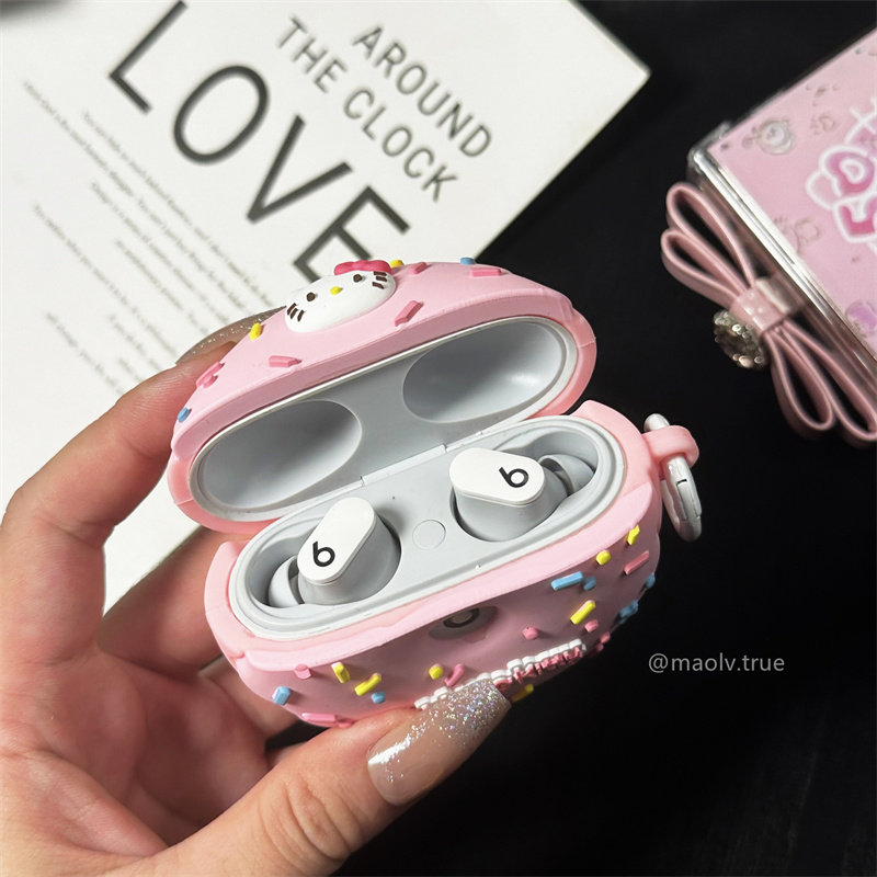 beats studio buds蓝牙耳机保护套Beats Studio Buds+二代耳机壳硅胶魔音buds+充电仓盒可爱甜圈粉色猫女适用