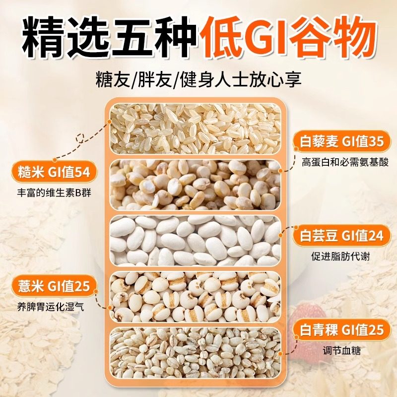 五白谷物即食麦片官方旗舰店薏米白青稞白芸豆杂粮燕麦片原味饱腹