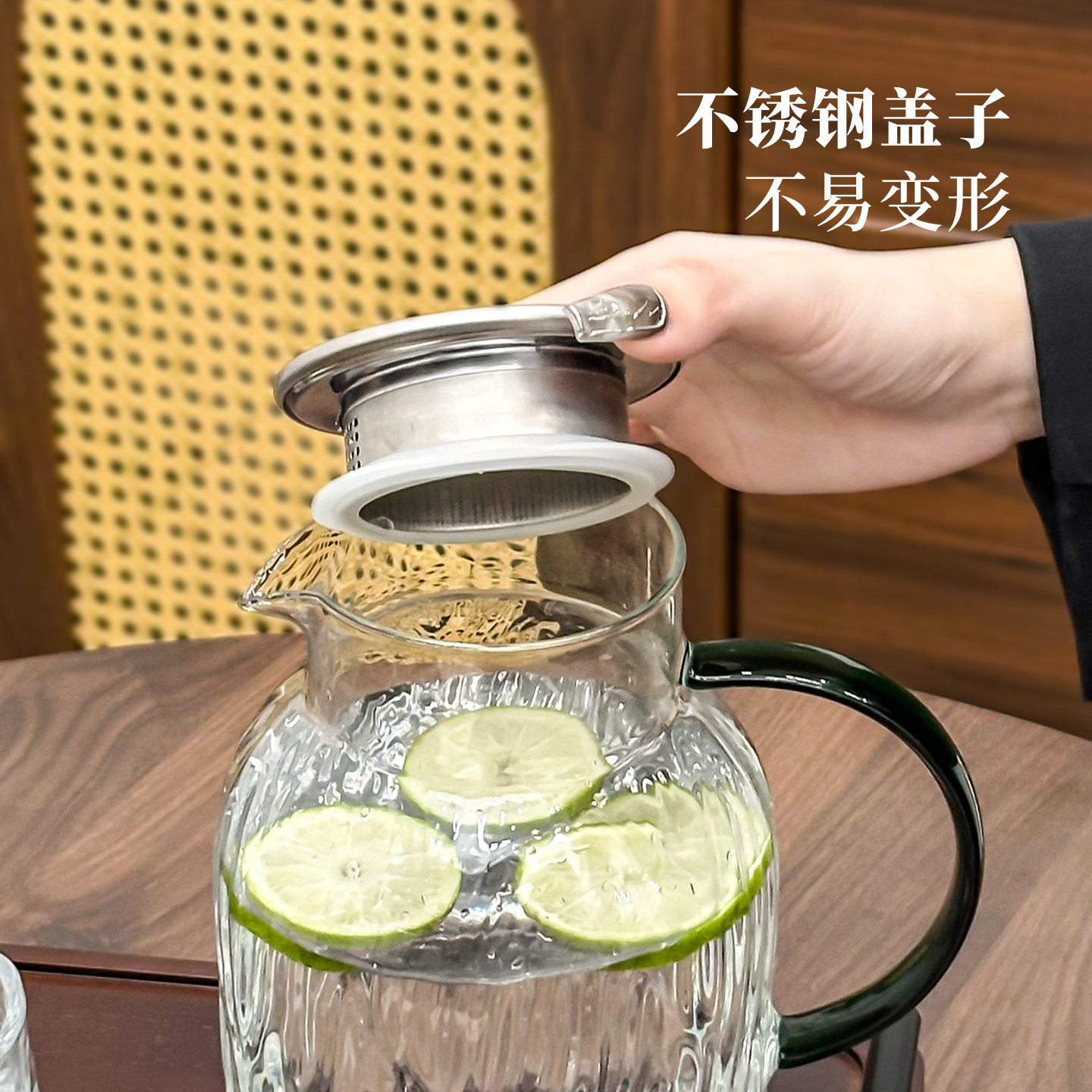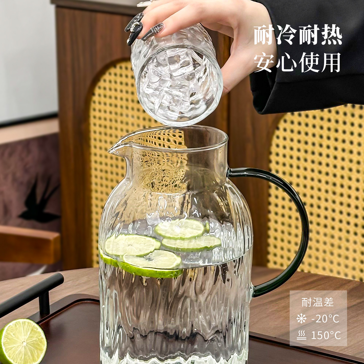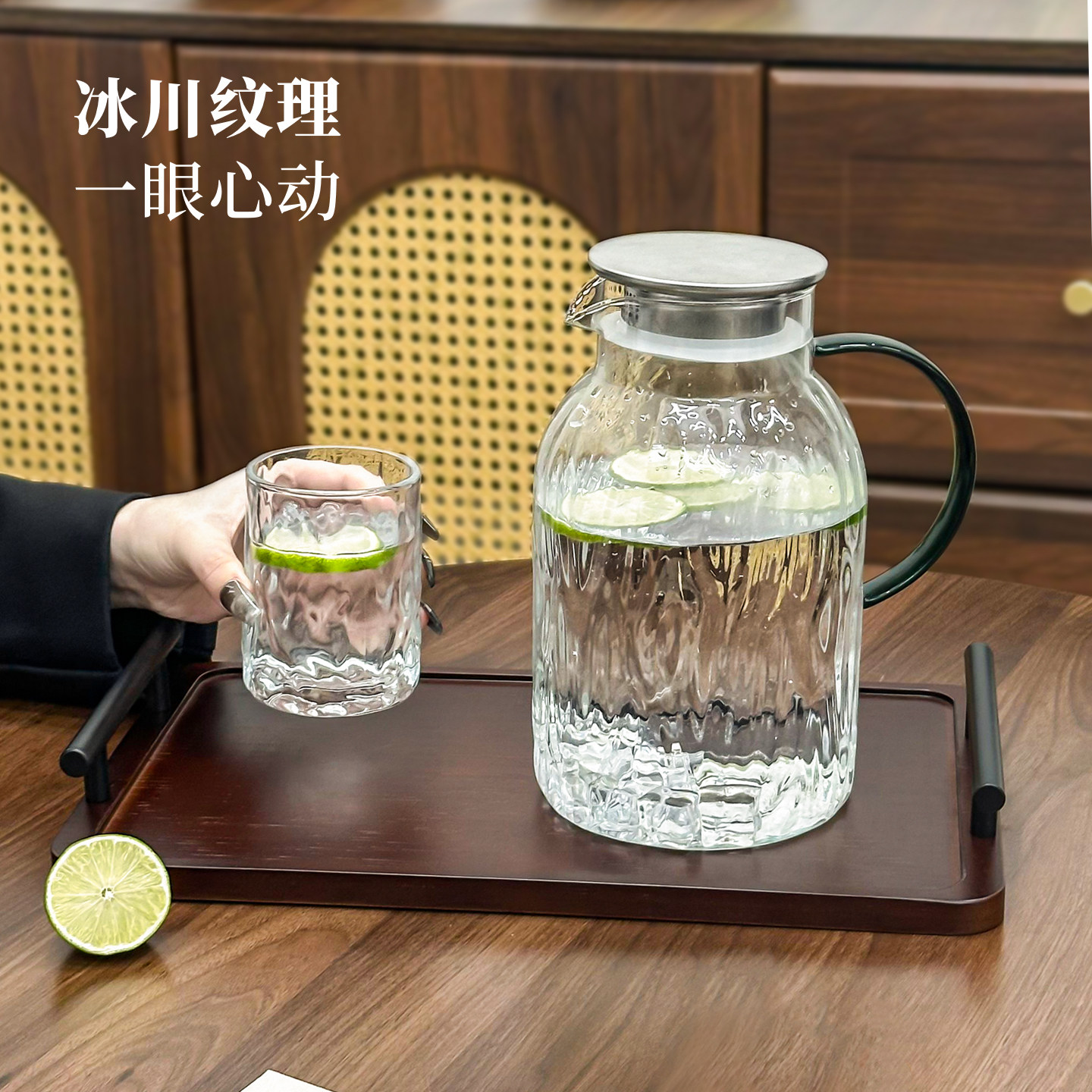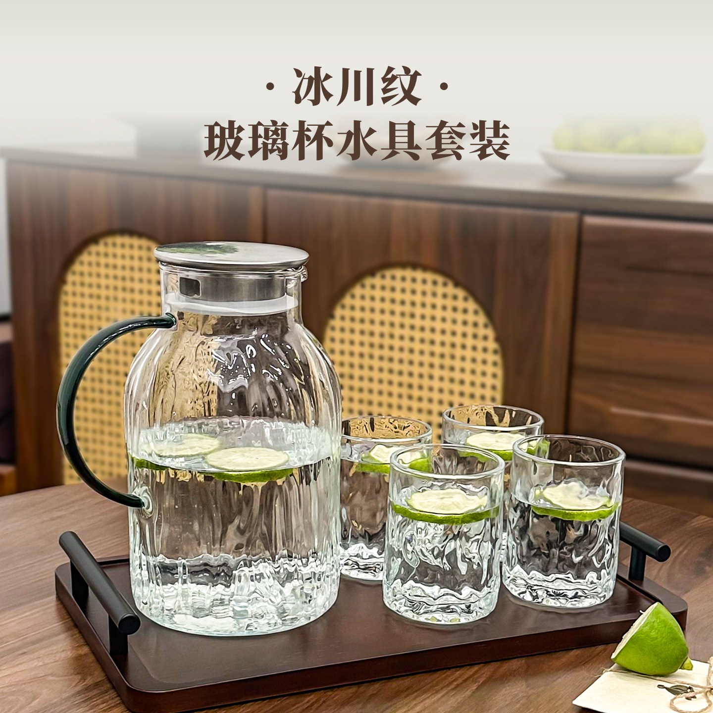 冷水壶玻璃耐高温凉水壶家用大容量果汁扎壶中式客厅水杯套装水壶