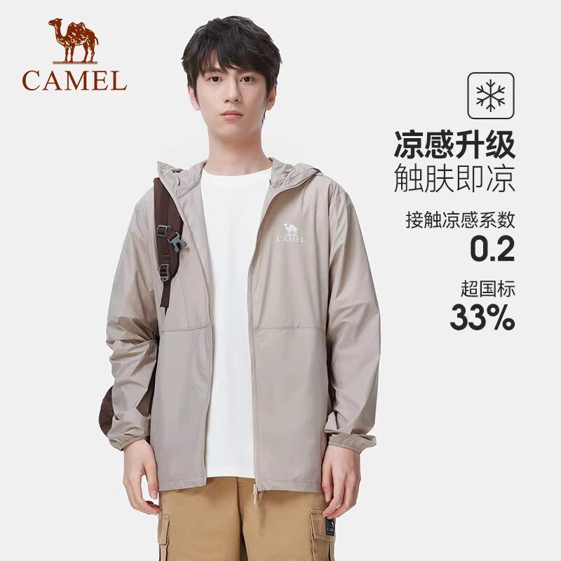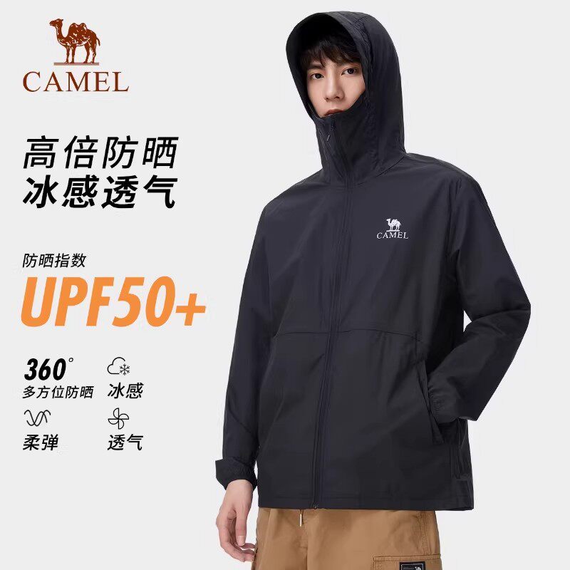 骆驼防晒衣男幻影黑26夏原纱冰丝凉感钓鱼防晒服户外运动速干外套