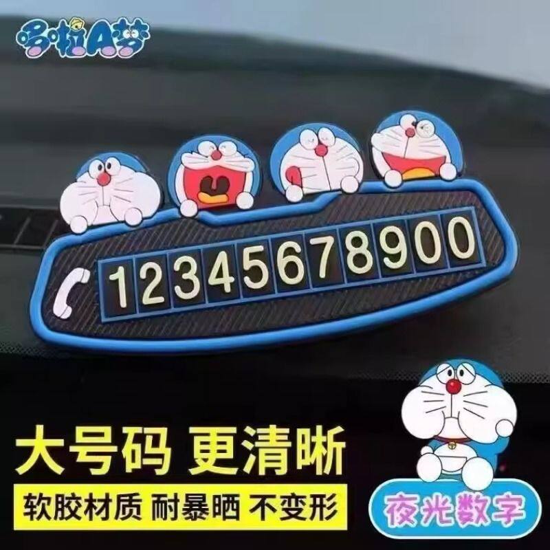 临时停车号码牌叮当猫机器猫耐高温挪车电话牌中控台高档车内专用