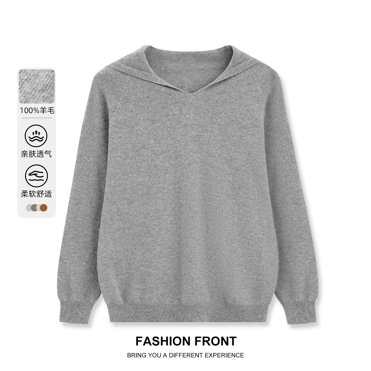 one more100纯羊毛连帽针织衫女2025秋款简约百搭长袖软糯打底衫