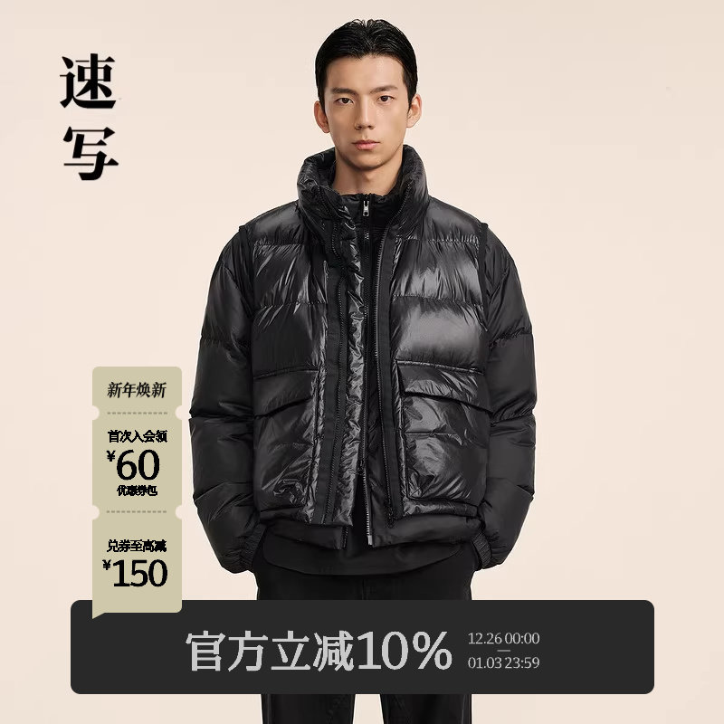 速写男装秋冬新款休闲宽松羽绒服短款拼接撞色保暖潮时尚舒适外套