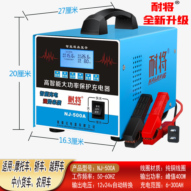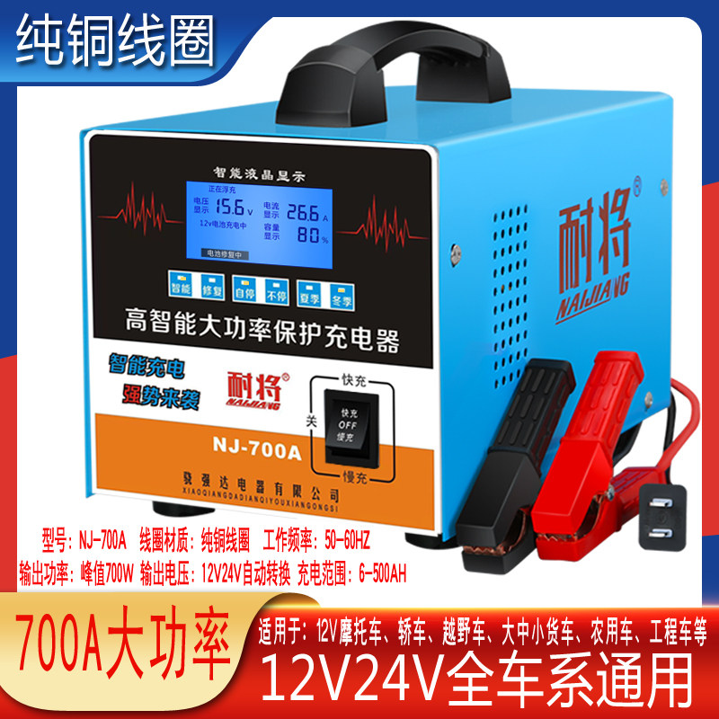 汽车电瓶充电器12v24v大功率全自动智能脉冲修复型车用纯铜充电机