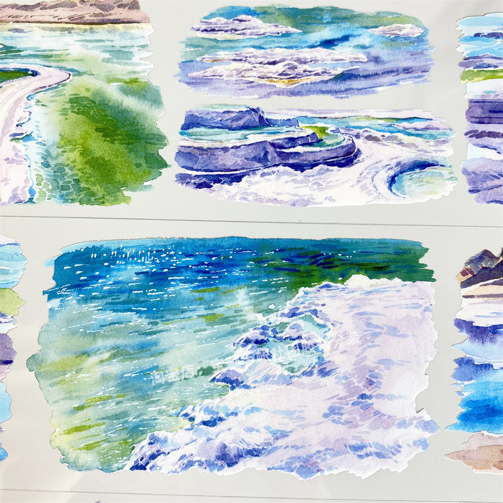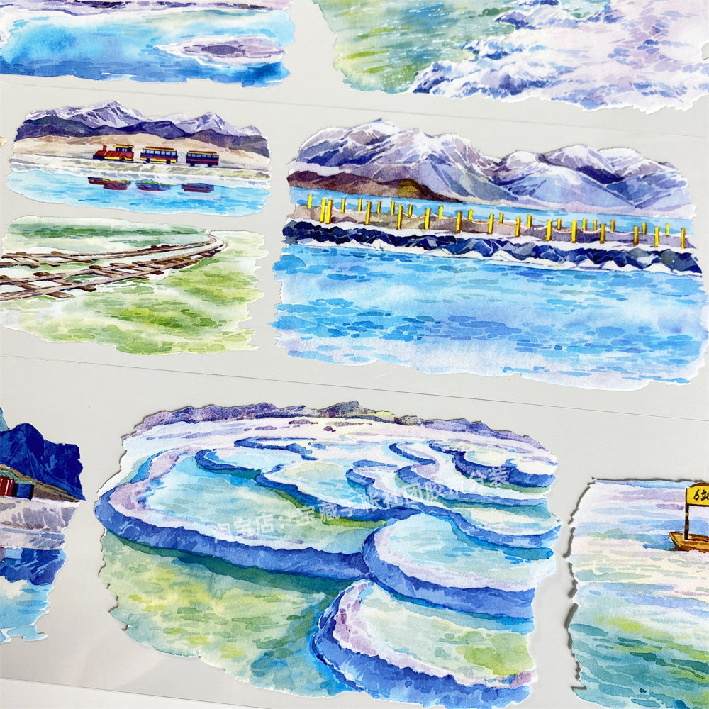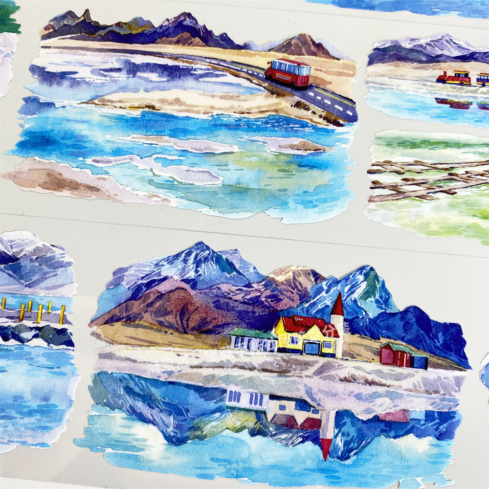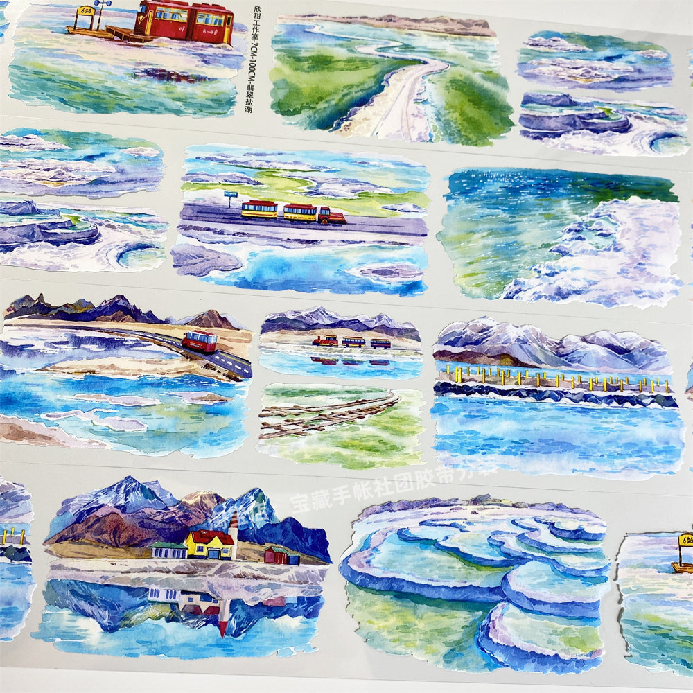 手帐分装胶带翡翠盐池欣甜工作室远山旅游车湖水古风PET素材账贴