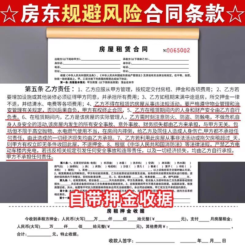 租房合约房东版2025商铺房子住房出租房合同中介房屋租赁协议书租租收租本收款安全法律效应新款房产法院水电