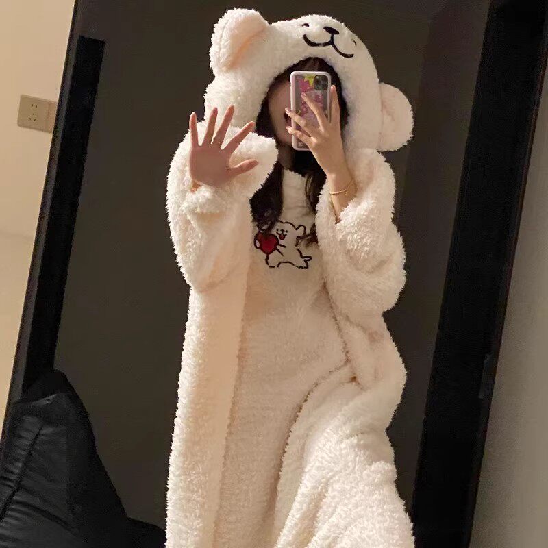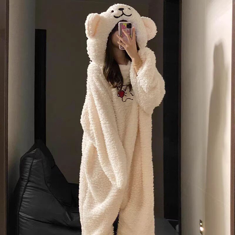 珊瑚绒连体睡衣女秋冬加绒加厚男女搞怪卡通可爱连帽亲子装家居服