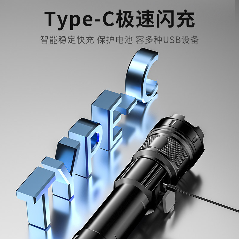 手电筒强光可充电式户外超亮远射小型便携家用耐用照明多功能高亮