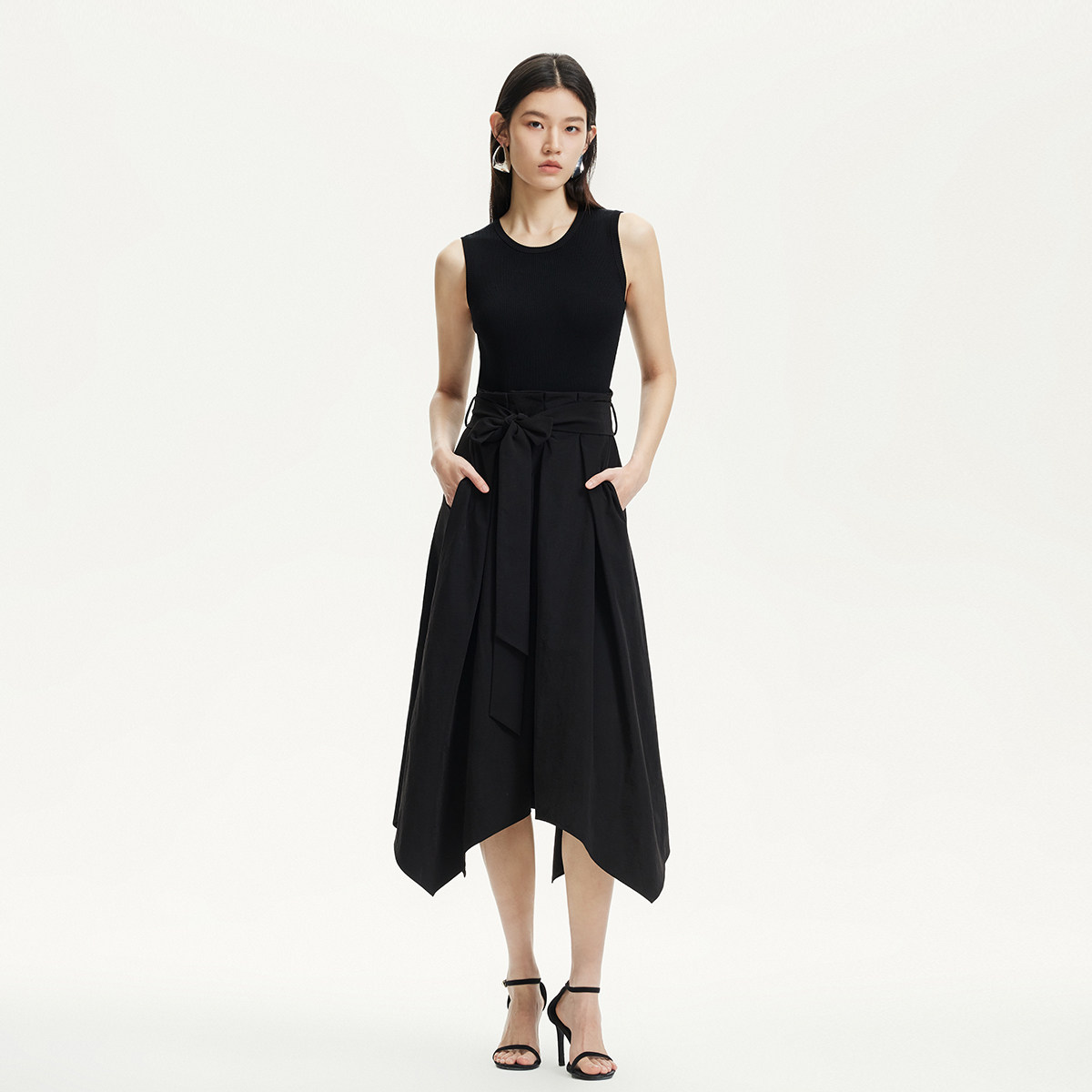 Vero Moda连衣裙2025夏季新款圆领腰带设计不规则底摆325246002