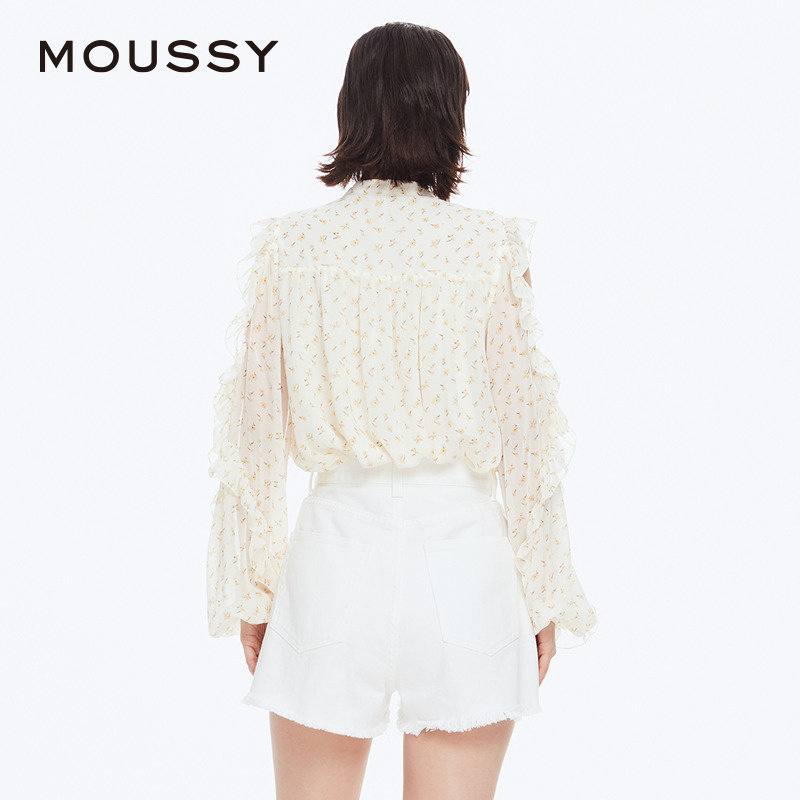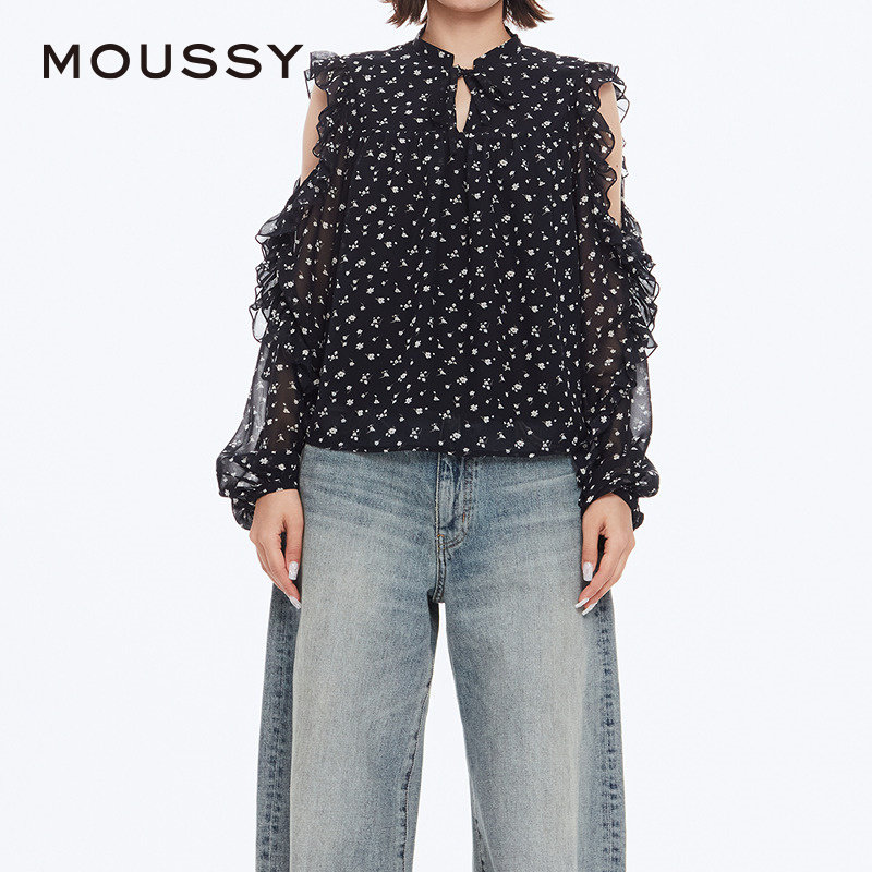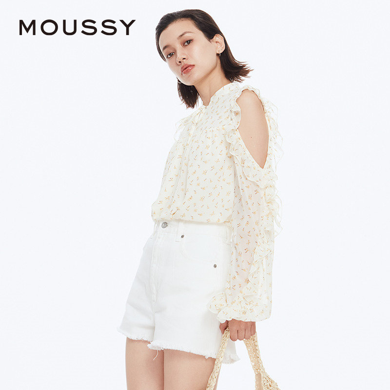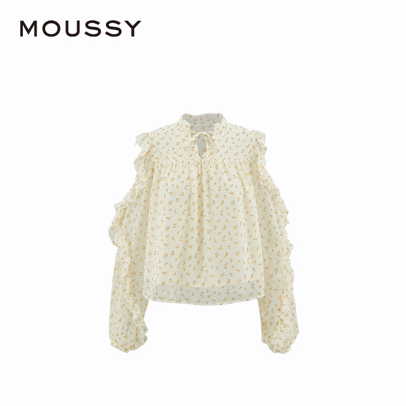MOUSSY 夏季新品甜美田园风荷叶边碎花露肩衬衫028HSZ30-1441