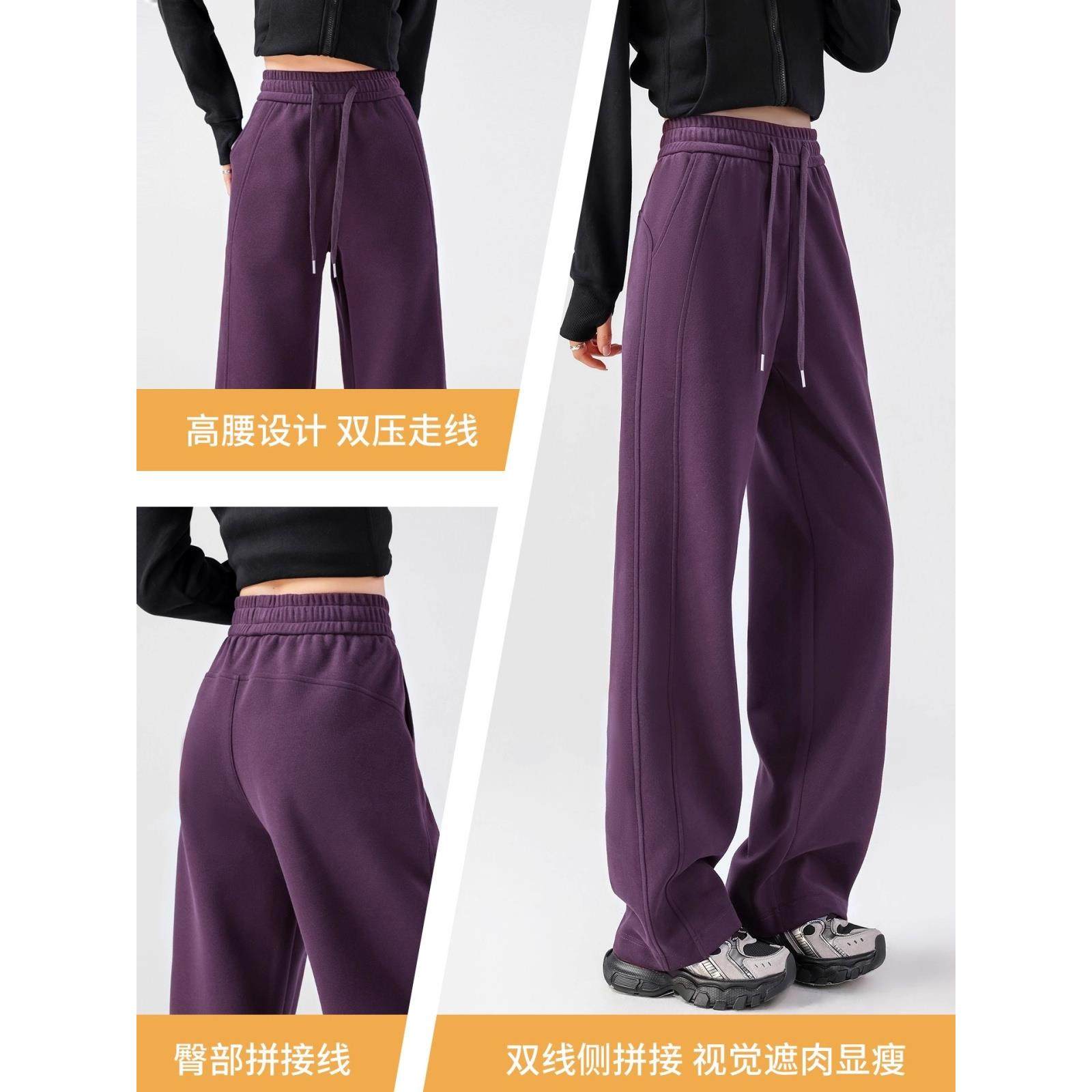 运动裤女2025直筒卫裤秋冬加绒窄版阔腿裤紫色白色加长小个子休闲