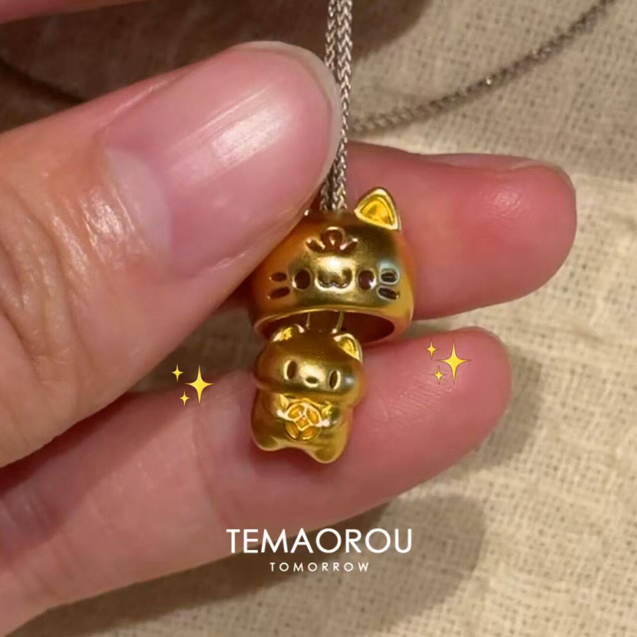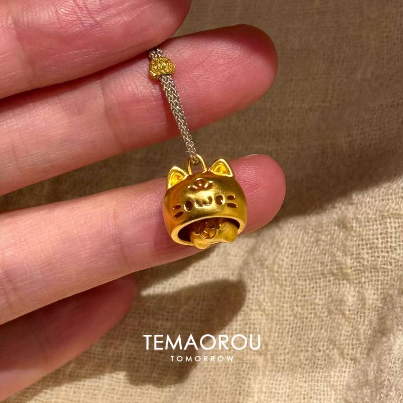 可爱【套头喵】招财躲猫猫金色小猫咪吊坠棕色编绳项链毛衣链配饰