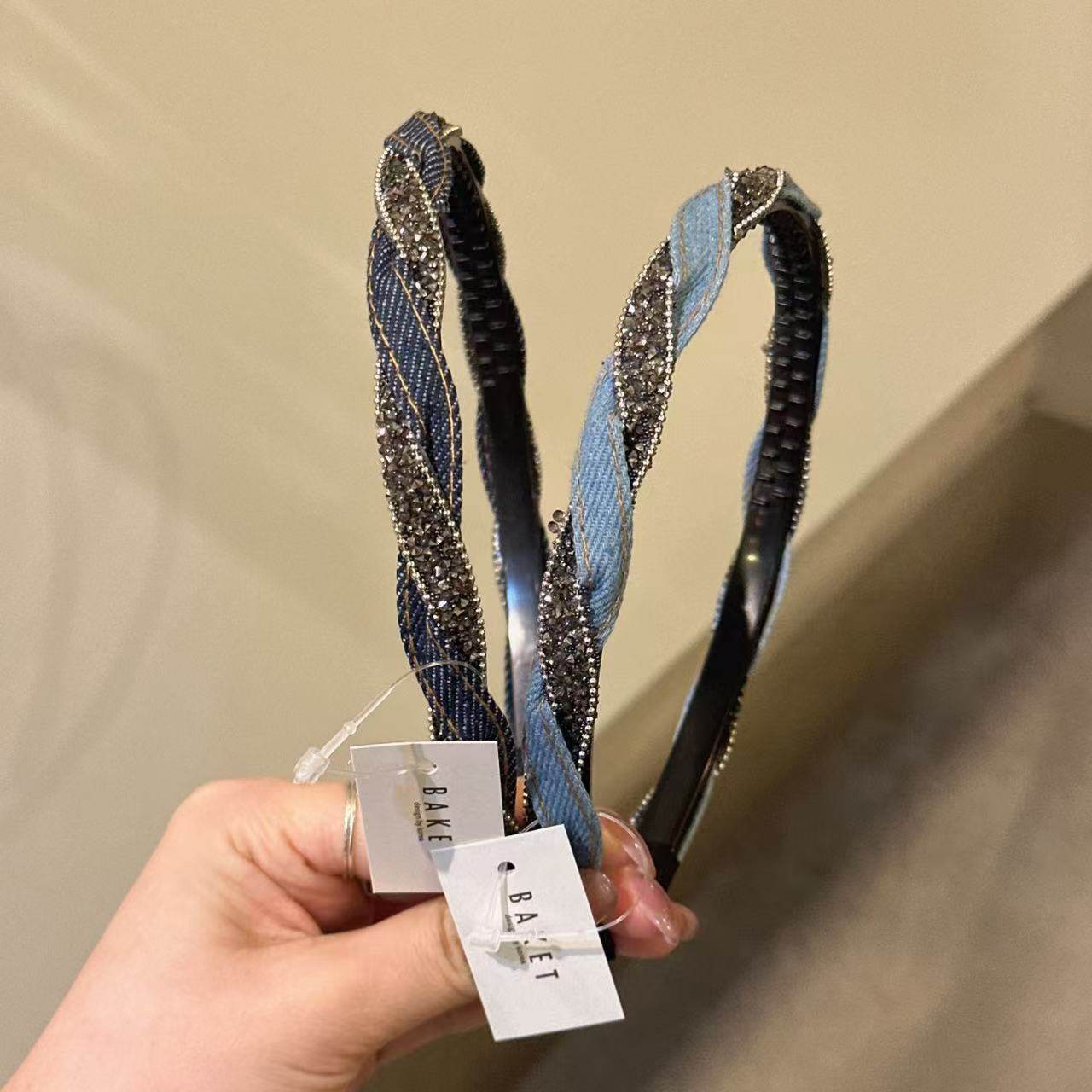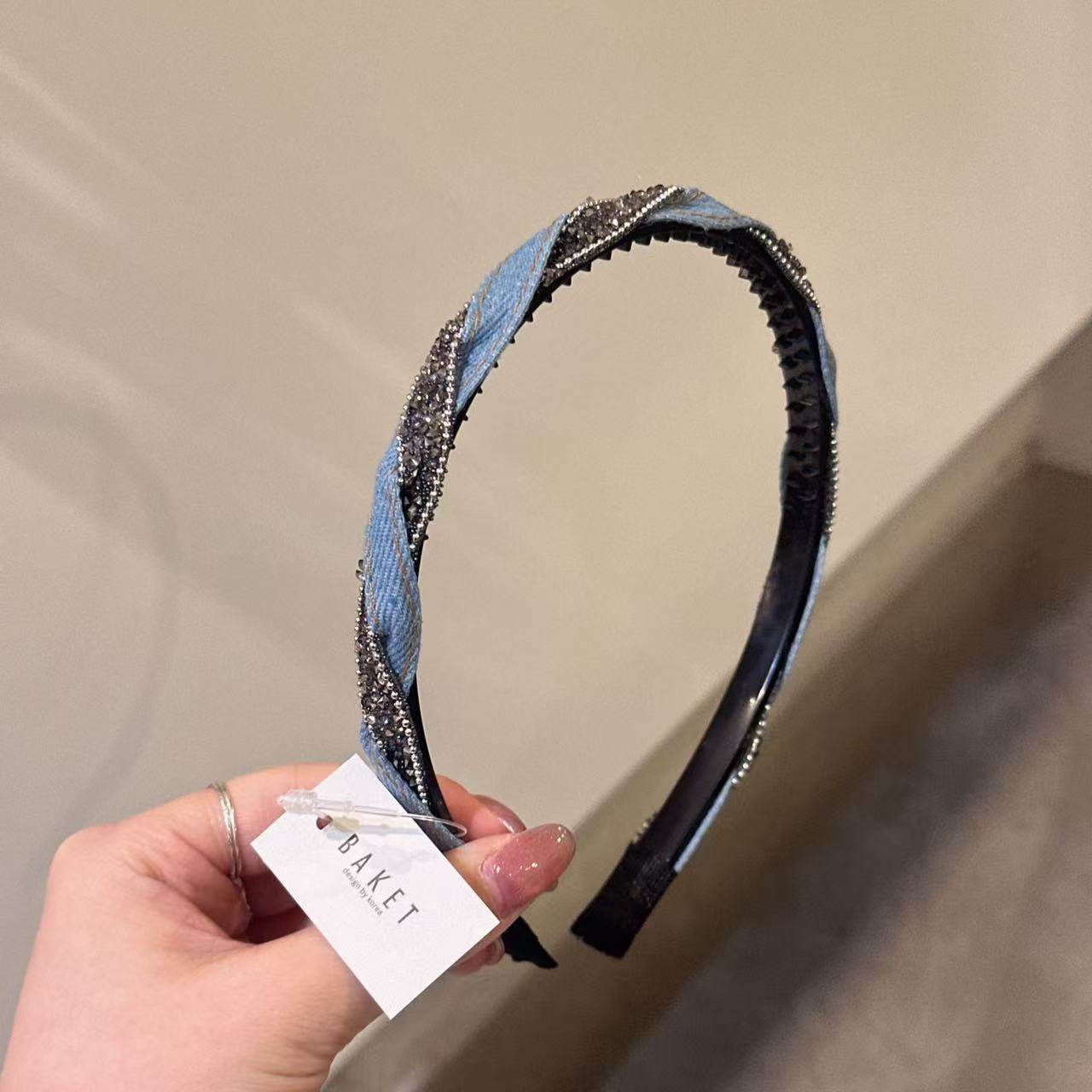 韩国baket发饰高级感牛仔布水钻发箍气质百搭日常外戴压发头箍
