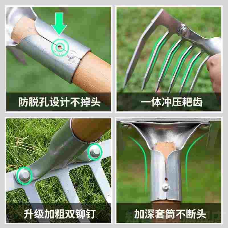 耙子农具松土除草神器搂草钉耙锄头不锈钢翻地铁耙子农用扒子开荒