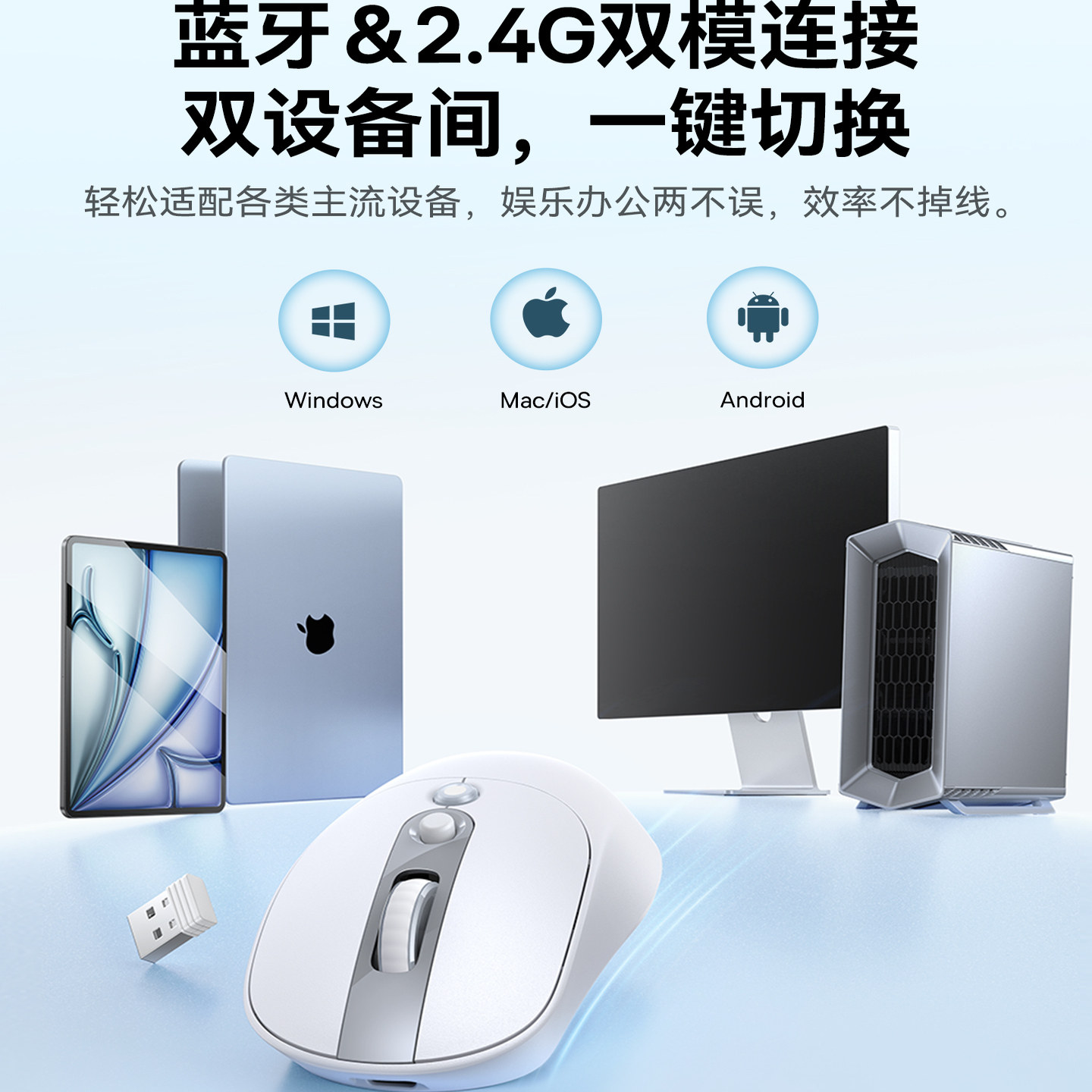 倍思轻量化无线蓝牙鼠标静音双模适用MacBook笔记本电脑办公滑鼠