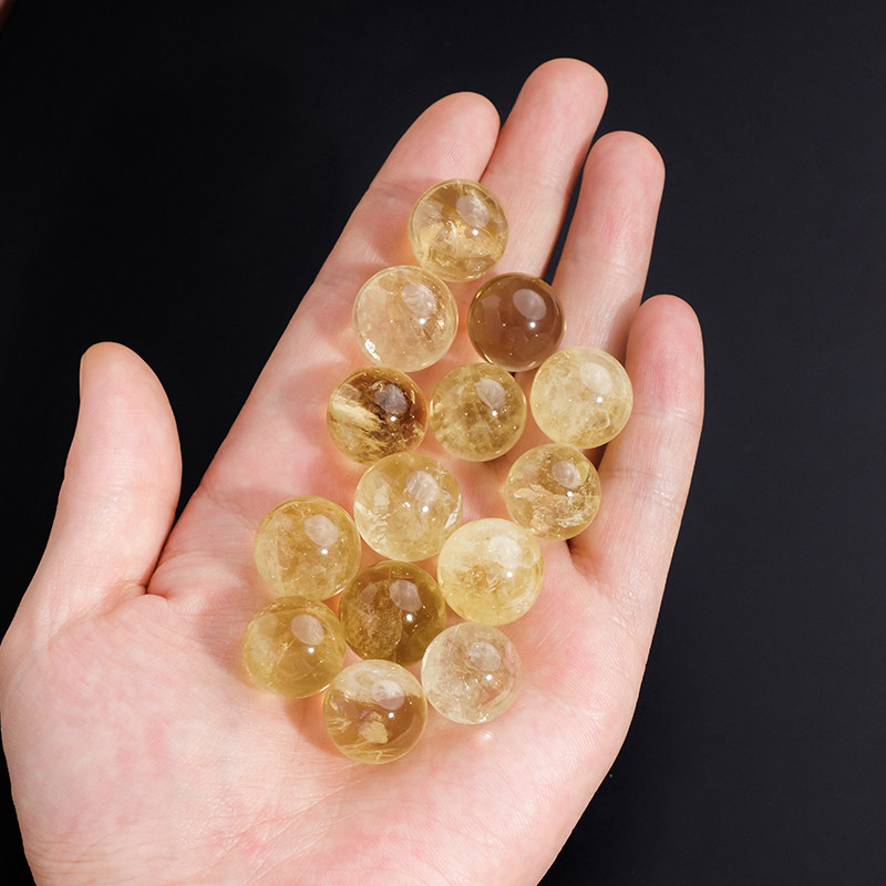黄水晶球巴西天然小圆球财运矿石头礼物小号七星阵球摆件天然水晶