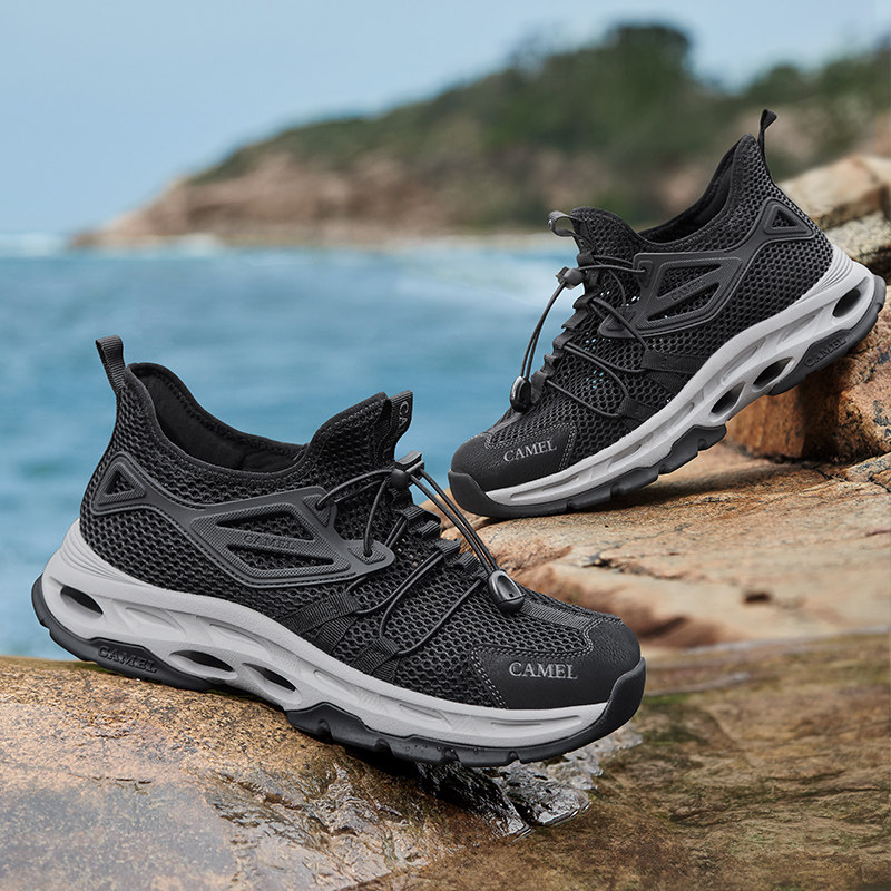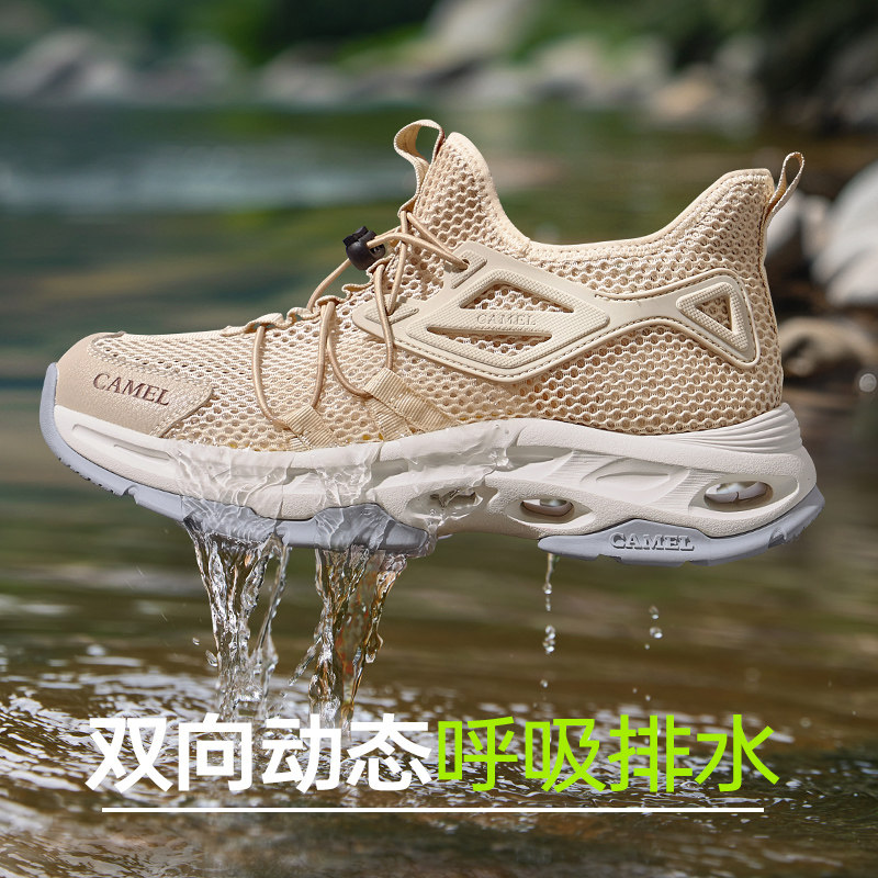 骆驼新款户外溯溪鞋男士夏季透气网鞋轻便薄款休闲运动鞋男