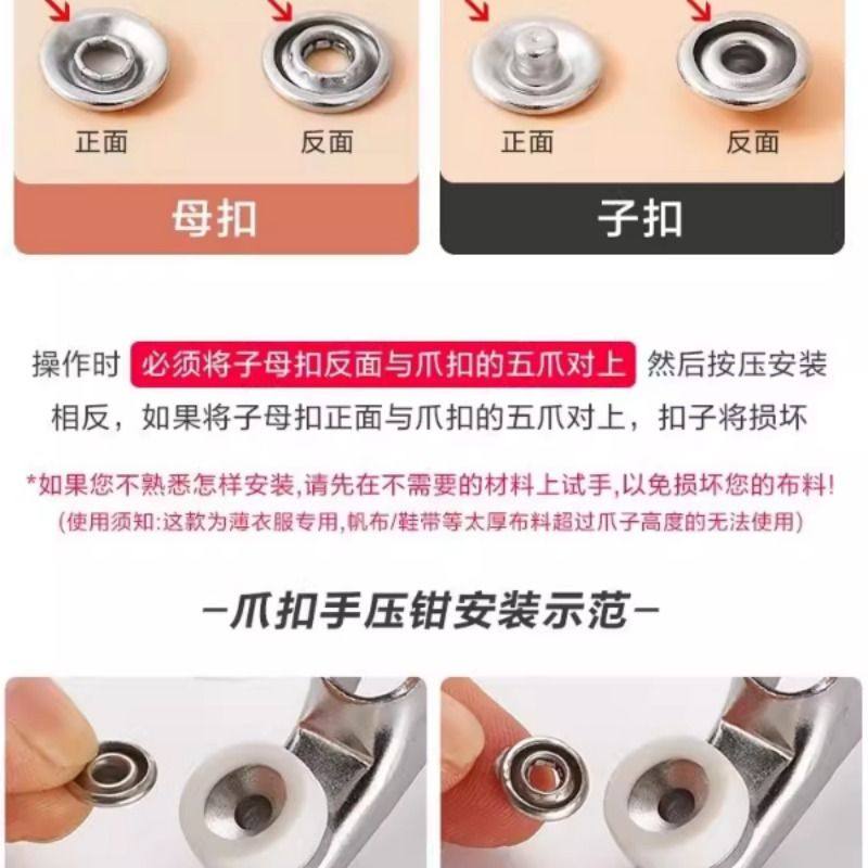五爪扣安装套装扣子免缝钉扣手压钳按扣工具子母扣多功能暗扣金属