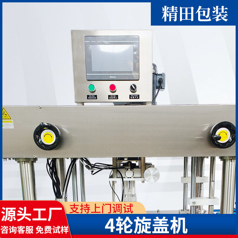 自动双头四轮旋盖机护发素沐浴露精油螺纹盖泵头盖搓盖机厂家