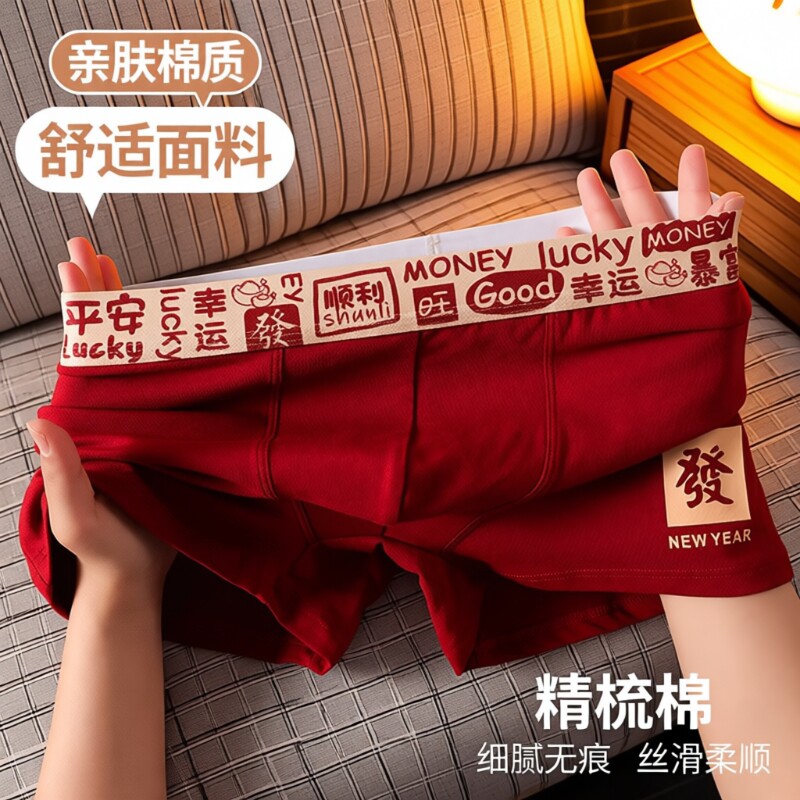 内裤男生平角舒适新年纯棉衩秋冬本命年潮流红色红运男士四角短裤