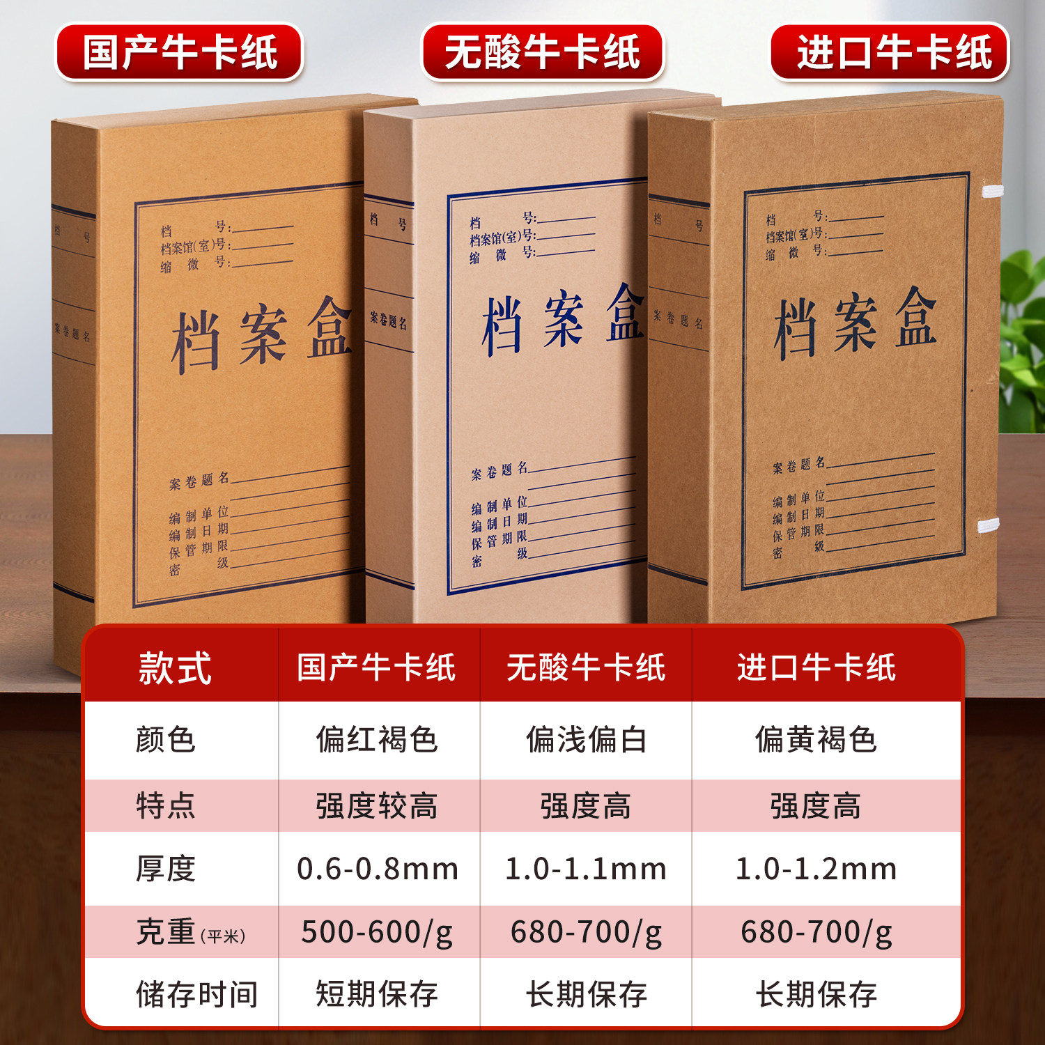 10个装牛皮纸档案盒文件资料盒大容量进口无酸国产复合纸质档案盒a4加厚办公收纳盒会计凭证可定制订做印logo