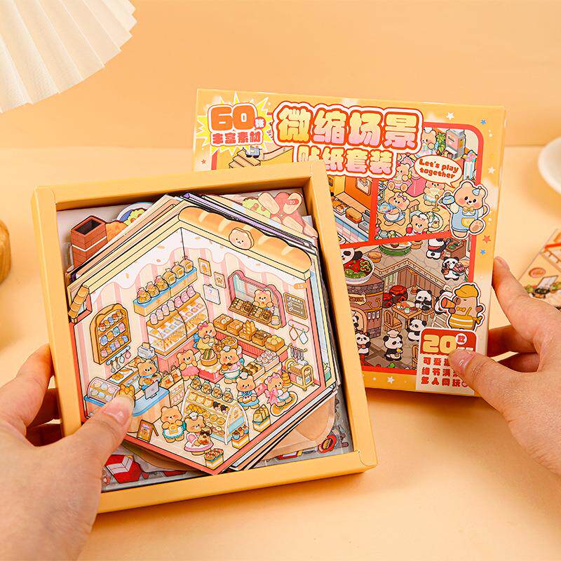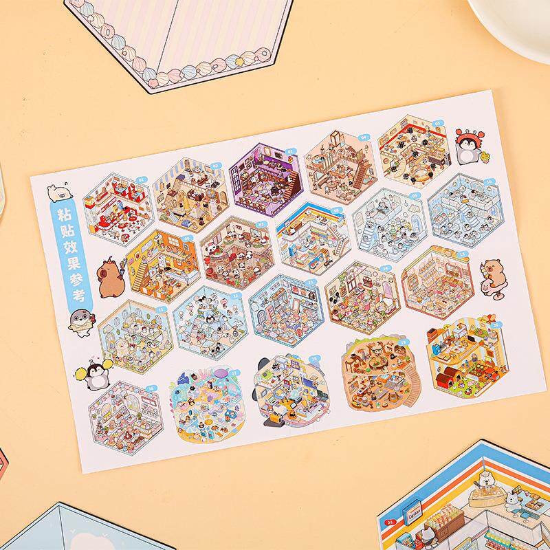 新款筑梦3d立体造景贴纸微缩场景合集本 大号版diy手工小屋手账贴儿童益智玩具素材贴画解压大版3D手账装饰贴