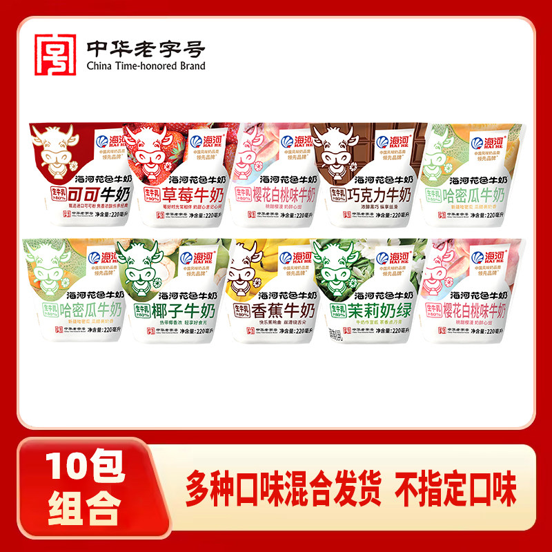海河牛奶多味混合220ml袋装网红果香奶儿童学生成人早餐奶调制乳
