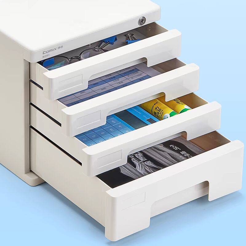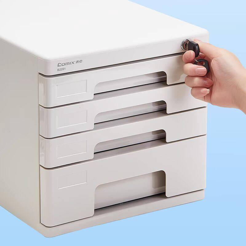 齐心桌面文件柜办公室带锁资料柜抽屉式物架收纳盒储物A4文件夹加厚多层组合小柜子分类档案柜办公用品